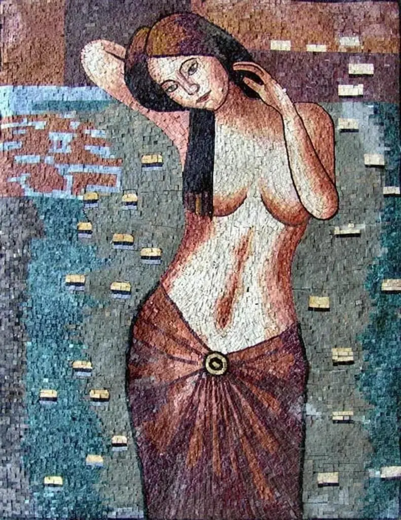 Introducing the exquisite "Woman In a Lake Of Lotus Flowers Mosaic," a stunning piece of hand-made marble mosaic art that transforms any space into a serene oasis. This captivating artwork features a graceful woman standing topless, elegantly combing her hair amidst a tranquil setting of lotus flowers, symbolizing beauty and tranquility. Crafted with meticulous attention to detail, this masterpiece is composed of 100% natural stones and decorative tiles, showcasing the vibrant colors and textures of the materials used. Each piece is uniquely designed to highlight the enchanting interplay of light and shadow, creating a visually striking focal point that draws the eye and sparks conversation.Ideal for enhancing the ambiance of various settings, this mosaic is perfect for wall displays in spas, hotel lounges, and luxurious swimming pools, adding an artistic touch that mirrors the essence of relaxation and rejuvenation. The enchanting portrayal of the woman amidst blooming lotus flowers serves not only as an artistic expression but also as a reminder of the serene beauty found in nature.Elevate your interior design with the "Woman In a Lake Of Lotus Flowers Mosaic," where art meets tranquility. This remarkable creation is not just a decorative piece; it is a testament to the skill and dedication of artisans who pour their heart and soul into every detail. Make this stunning mosaic a centerpiece in your space and let it inspire a calming ambiance that soothes the senses. Perfect for art enthusiasts and those who appreciate the finer things in life, this artwork is a must-have addition for anyone looking to enhance their environment with beauty and elegance.