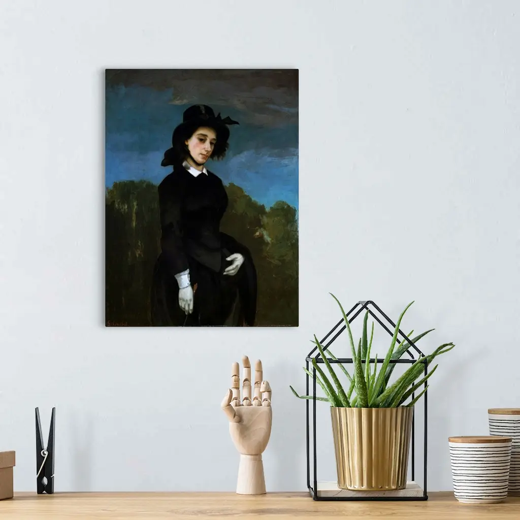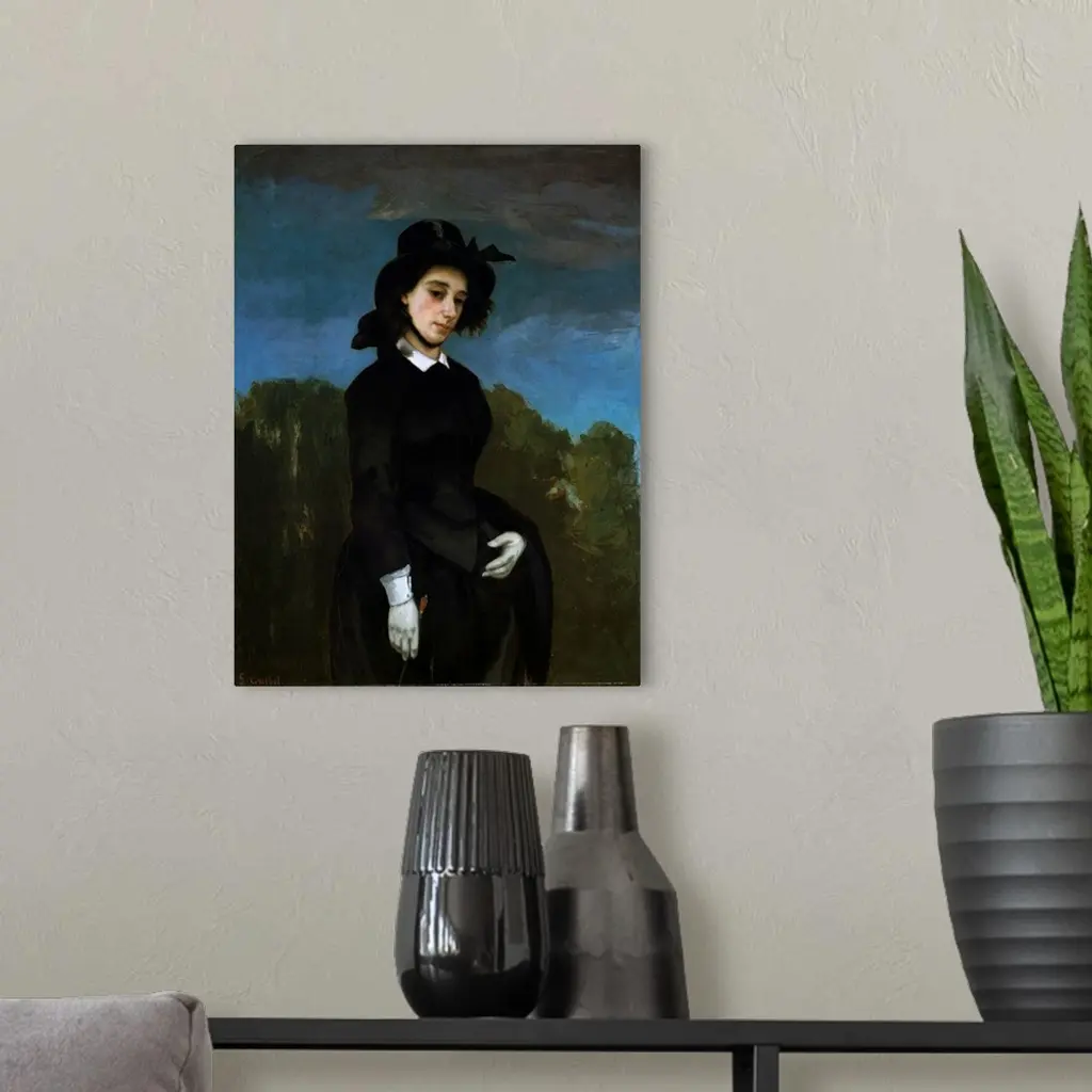 This painting of a horsewoman (in French,?amazone) was long thought to represent the poet and novelist Louise Colet, muse of writer Gustave Flaubert. However, the sitter has since been identified as Madame Clement Laurier. This work, made on the occasion of her marriage in 1856, forms a pair with Courbet's portrait of her husband (1855, Milwaukee Art Museum). The artist Mary Cassatt admired this picture as the finest woman's portrait Courbet ever did.�
