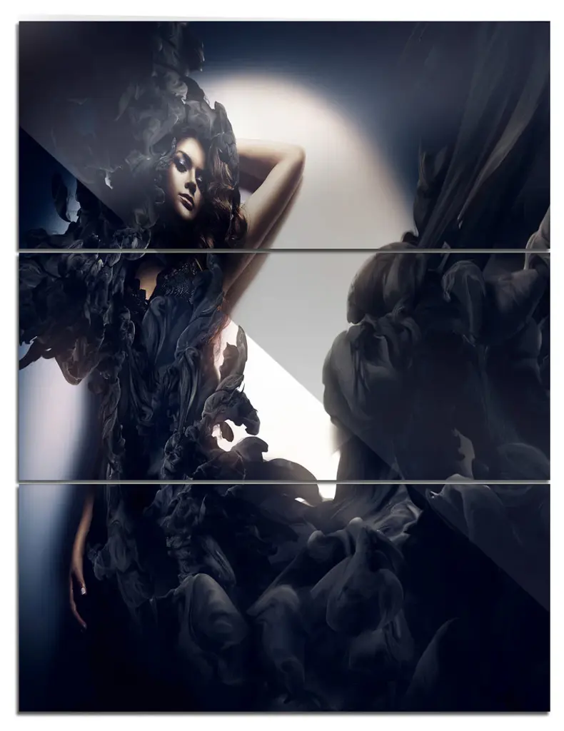 "Woman In Flying Red Dress" Portrait Digital Art Canvas Print, 5 Panels