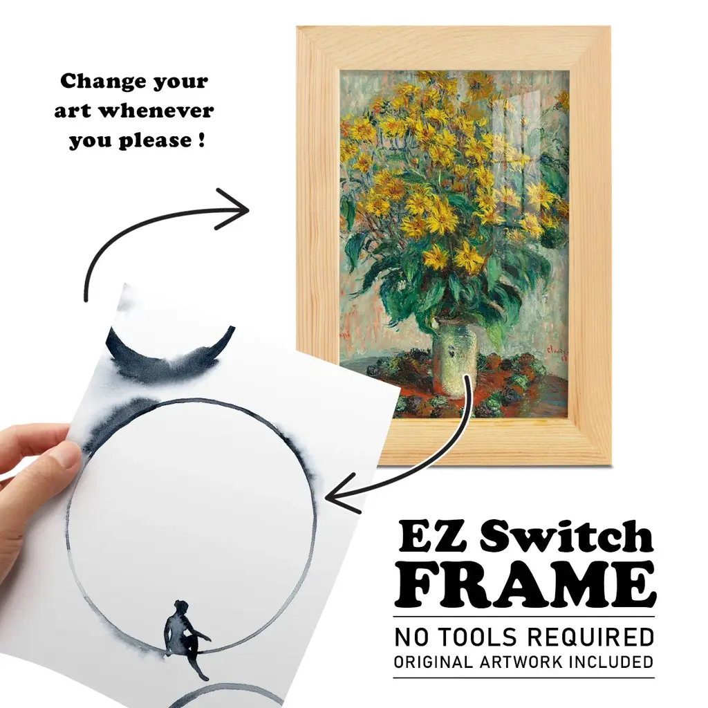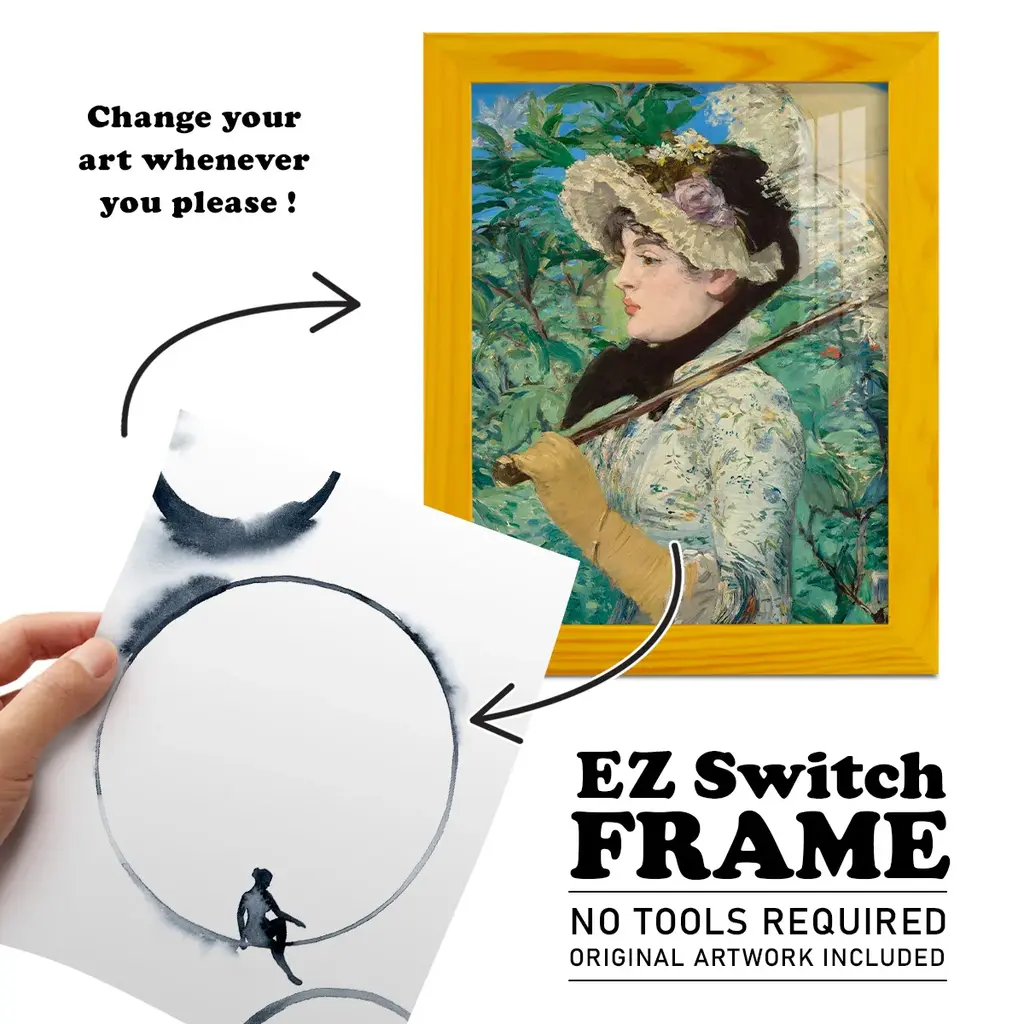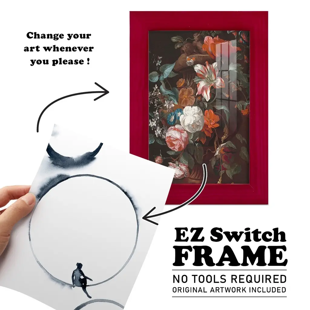 Woman in the Moon I -EZ SWITCH Framed Print w/glass-Cherry Red A delightful, framed print. Featuring a solid wood frame with real wood glass. This premium print is giclee quality. In addition, every frame features a removable back and table top stand. This allows you to change your art in the future or to just stand the art on a table for a new look. We are sure you'll enjoy our new series of EZ SWITCH Framed Art. Solid Wood Frame Real Glass Removable / Replaceable Art Built in Tabletop Stand Sizes range from 4x6 up to 12x15 - buy just one or pair them up as sets as you see fit.