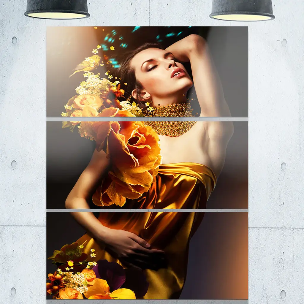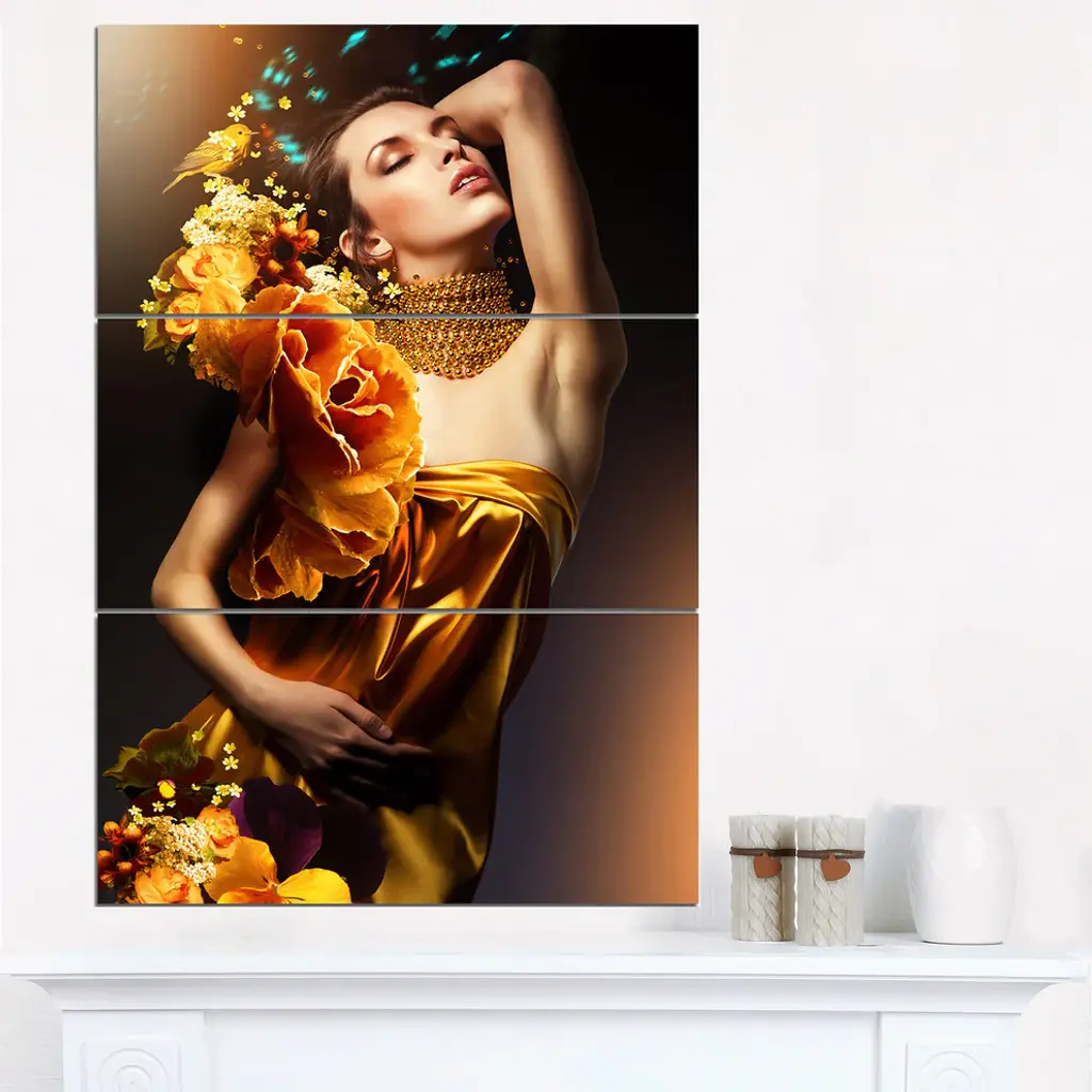 "Woman In Yellow Dress" Digital Metal Wall Art, 3 Panels, 28"x36"