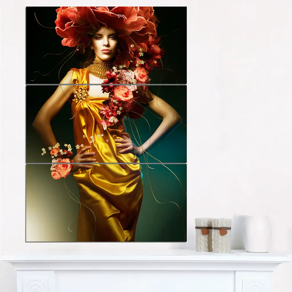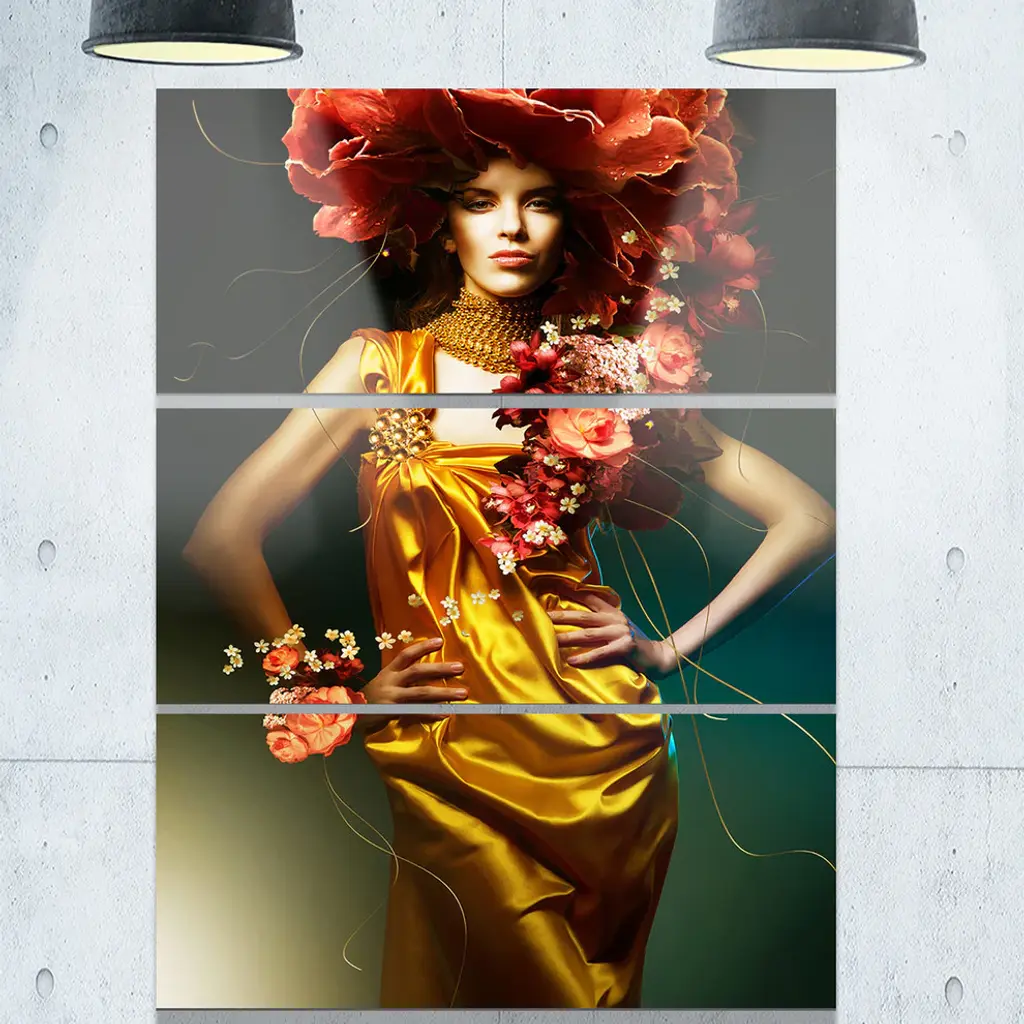 "Woman In Yellow Dress" Metal Wall Art, 3 Panels, 28"x36"