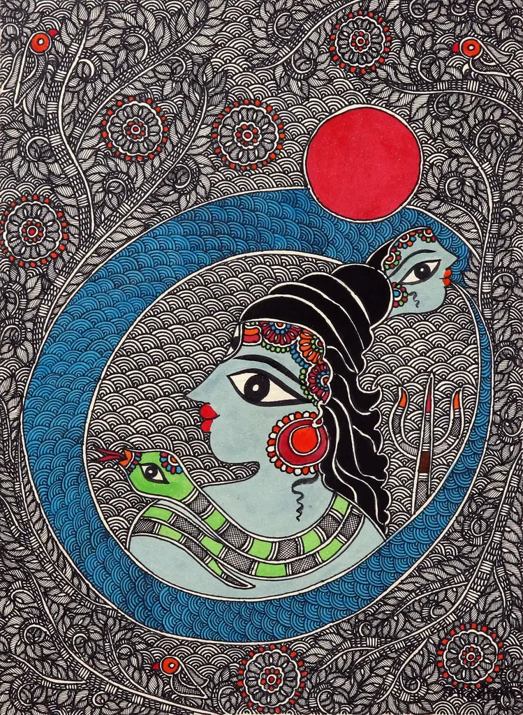 Woman Madhubani Painting On Handmade Paper From India- My Solitude