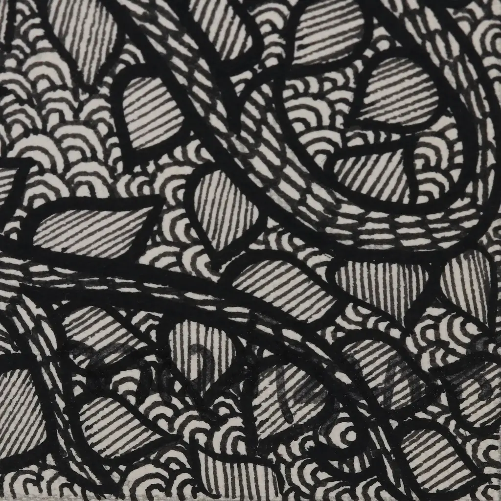 The deep colors that soak both the moon and a pensive woman make the most remarkable contrast with the black and white background in this folk painting by Indian artist Bharti Dayal. She works in the traditional Madhubani style, applying acrylic paint and vegetable dyes on handmade paper, to craft the splendid scene of a woman lost in thought in the outdoors and bathed by the moonlight.
