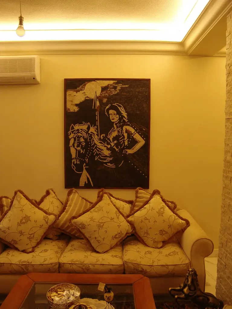 Introducing our exquisite "Woman Riding a Horse Mosaic Art," a stunning hand-crafted masterpiece that will elevate any space with its elegance and symbolism. Each mosaic is meticulously created using 100% natural stones and art tiles, ensuring that every piece is unique and of the highest quality. This captivating black and white mosaic art depicts a powerful image of a woman warrior riding her majestic horse under the enchanting glow of a full moon. The intricate details and contrasting colors come together to create a hypnotic scene — a true celebration of strength, courage, and determination. The moonlight serves not just as a source of illumination but also as a metaphor for guidance and resilience, making this piece not only a decoration but also an inspiring symbol of the indomitable spirit.Perfect for any room, this art piece can be elegantly displayed in a living room, office, or even a personal sanctuary. It invites conversation and admiration while effortlessly enhancing your home decor with its timeless charm. Whether you're an art collector or simply looking to brighten your space, the "Woman Riding a Horse Mosaic Art" will not disappoint. It’s an ideal gift for those who appreciate the beauty of craftsmanship, the allure of nature, and the strength of the human spirit.Bring home this remarkable tapestry of art today and let the powerful imagery of a woman and her horse inspire you daily, reminding you of the strength and willpower that resides within us all.