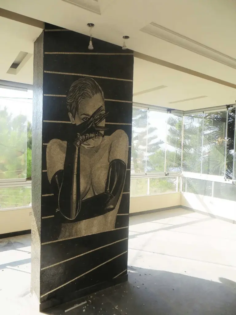 Introducing the captivating "Woman Stone Art Mosaic," a stunning piece that brings elegance and artistry into your home. This exquisite artwork beautifully depicts a woman, masterfully crafted using a unique blend of contrasting black and white colors. The striking color palette not only enhances the visual appeal of the piece but also adds a modern touch that suits any decor style.What sets this mosaic art apart is its meticulous handmade craftsmanship. Each tile is carefully selected and placed by skilled artisans, resulting in a truly one-of-a-kind masterpiece. Made from 100% natural stones and art tiles, this mosaic not only embraces aesthetic beauty but also champions sustainability and natural materials. The textural differences of the stones create depth and dimension, making it a focal point in any room.Whether you hang it in your living room, bedroom, or office, the "Woman Stone Art Mosaic Mural" is designed to inspire conversations and admiration. It's more than just a decorative item; it represents strength, beauty, and artistic expression. Enhance your space with this eye-catching artwork that captures the essence of femininity and grace. Perfect as a gift for art lovers or to add to your personal collection, this mosaic will surely become a cherished piece in your home for years to come. Elevate your surroundings with the timeless elegance of the "Woman Stone Art Mosaic."