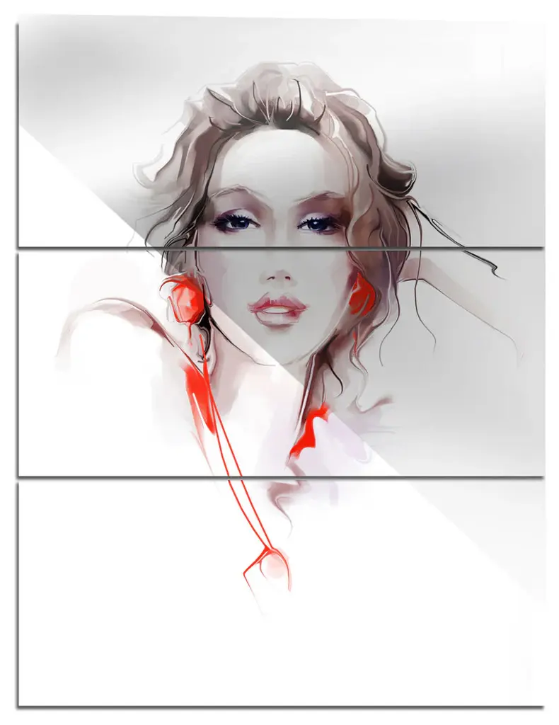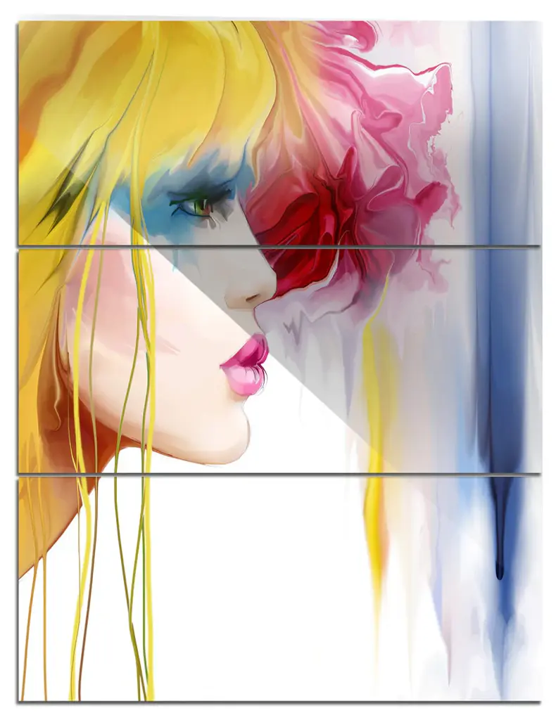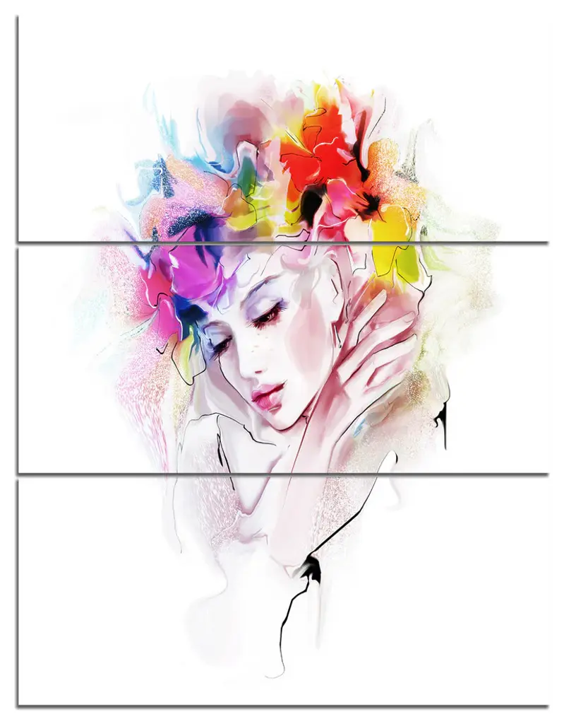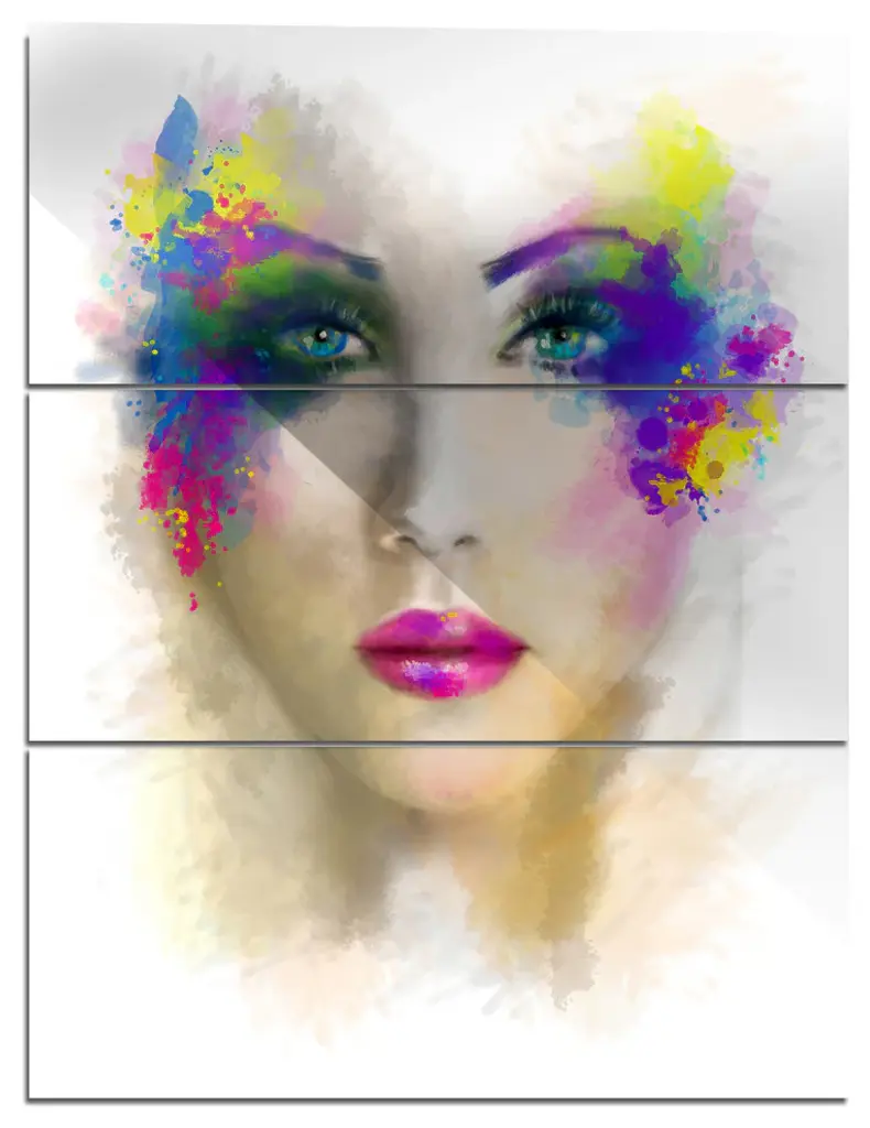 "Woman With Colors" Digital Glossy Metal Wall Art, 3 Panels, 28"x36"