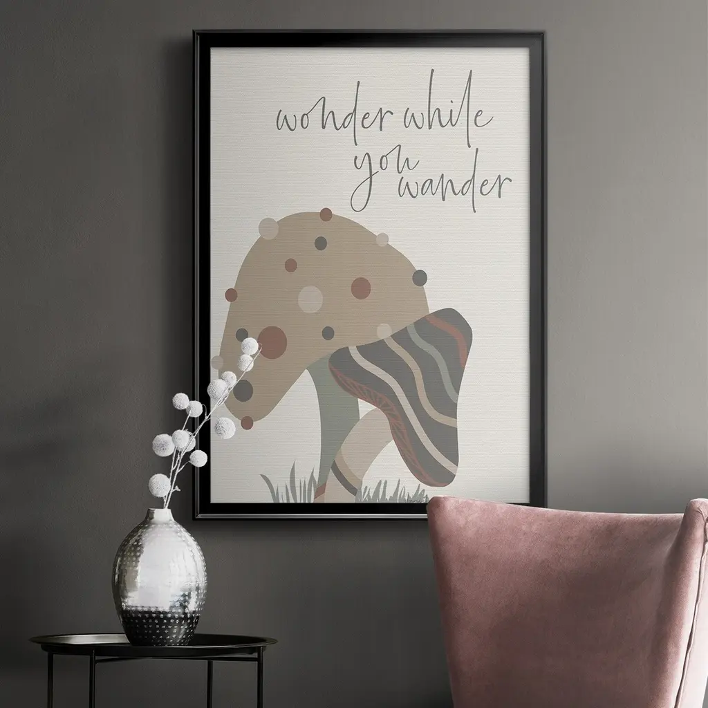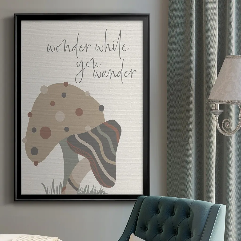 Wonder While You Wander Premium Framed Print - Ready to Hang A Premium Framed Print created to last. Framed in distressed wood and available in an array of sizes and colors Featuring a beveled a solid wood stretcher bar, each piece comes ready to hand 4 SIZES AVAILABLE 30.5''X42.5'' - Overall Size 26.5'X36.5'' - Overall Size 22.5''x30.5'' - Overall Size 18.5''x24.5'' - Overall Size Each piece is made to order. Each piece comes with hanging hardware. Made in the USA Ready to Hang