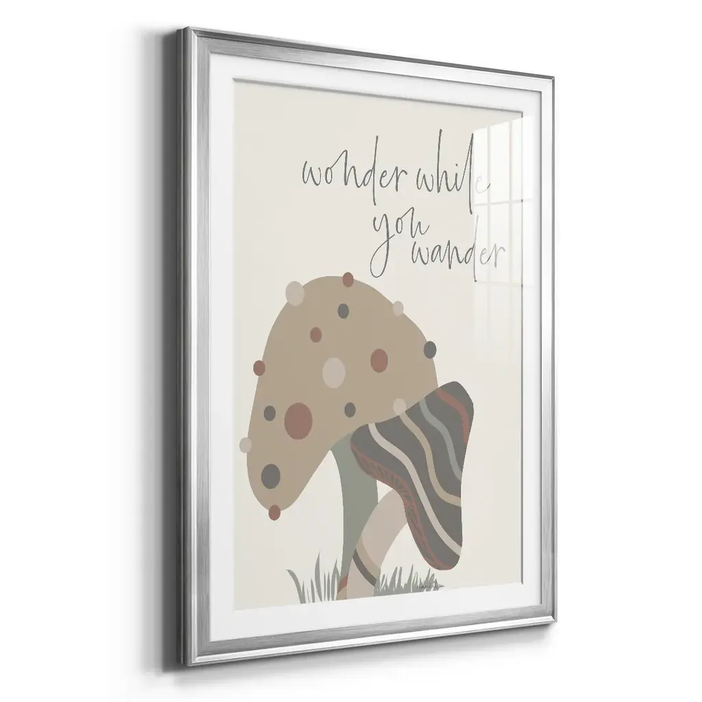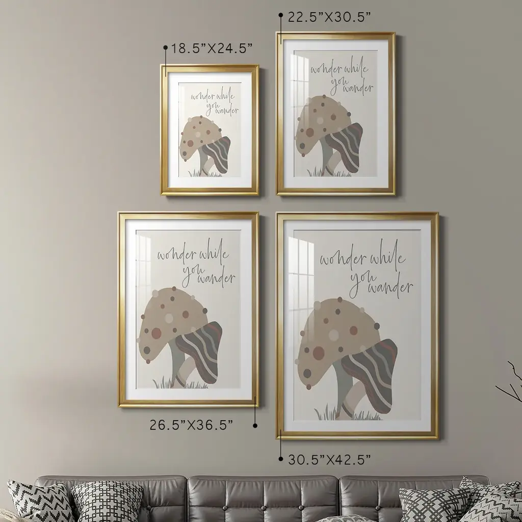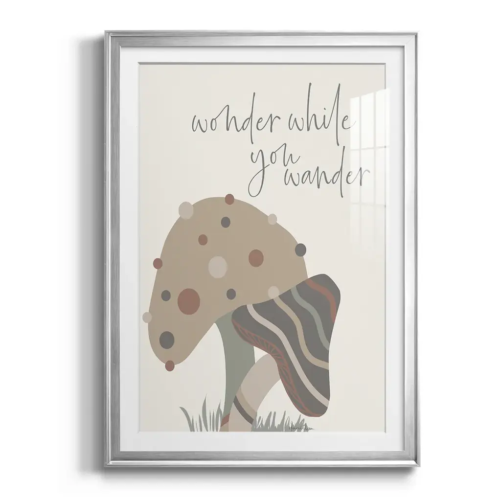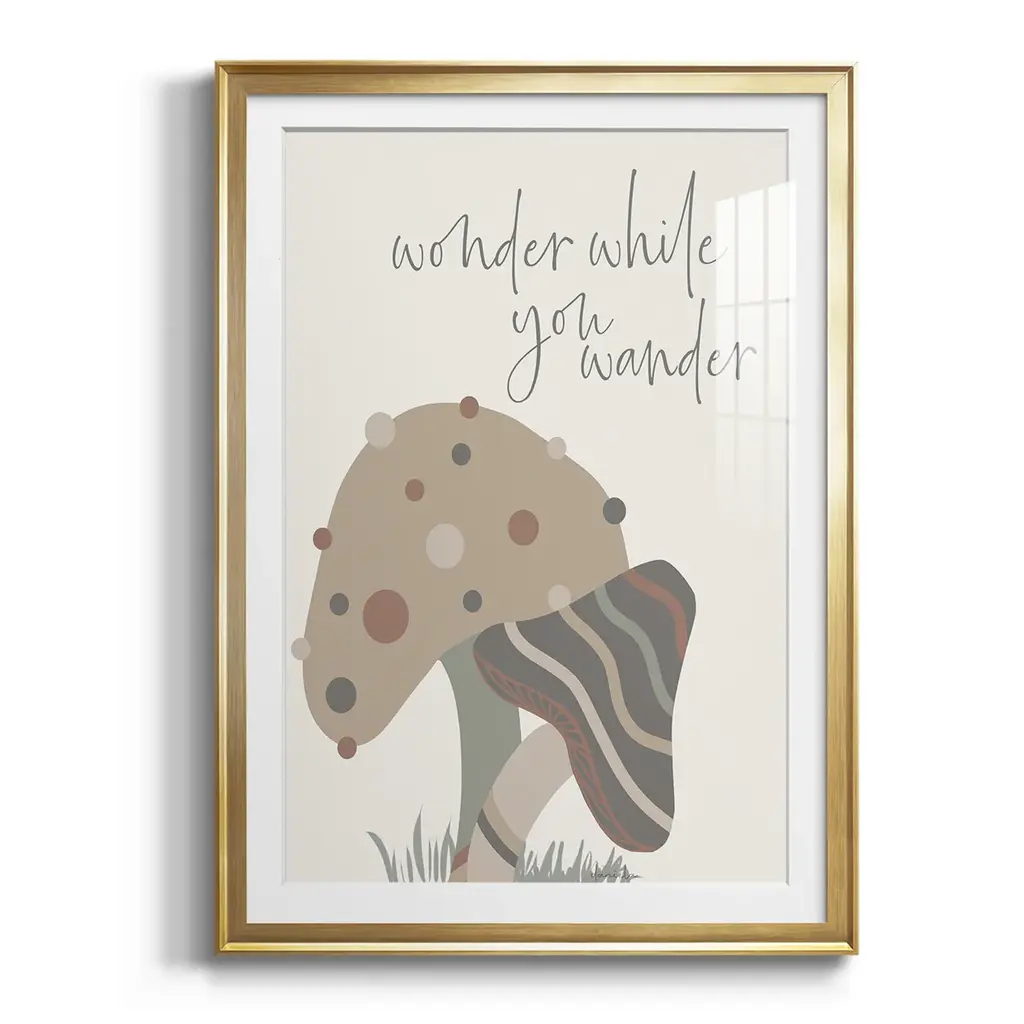 Wonder While You Wander Premium Framed Print - Ready to Hang A Premium Framed Print created to last. Framed in distressed wood and available in an array of sizes and colors Featuring a beveled a solid wood stretcher bar, each piece comes ready to hand 4 SIZES AVAILABLE 30.5''X42.5'' - Overall Size 26.5'X36.5'' - Overall Size 22.5''x30.5'' - Overall Size 18.5''x24.5'' - Overall Size Each piece is made to order. Each piece comes with hanging hardware. Made in the USA Ready to Hang Giclee Paper Print Acrylic Glass Beveled Matt Board