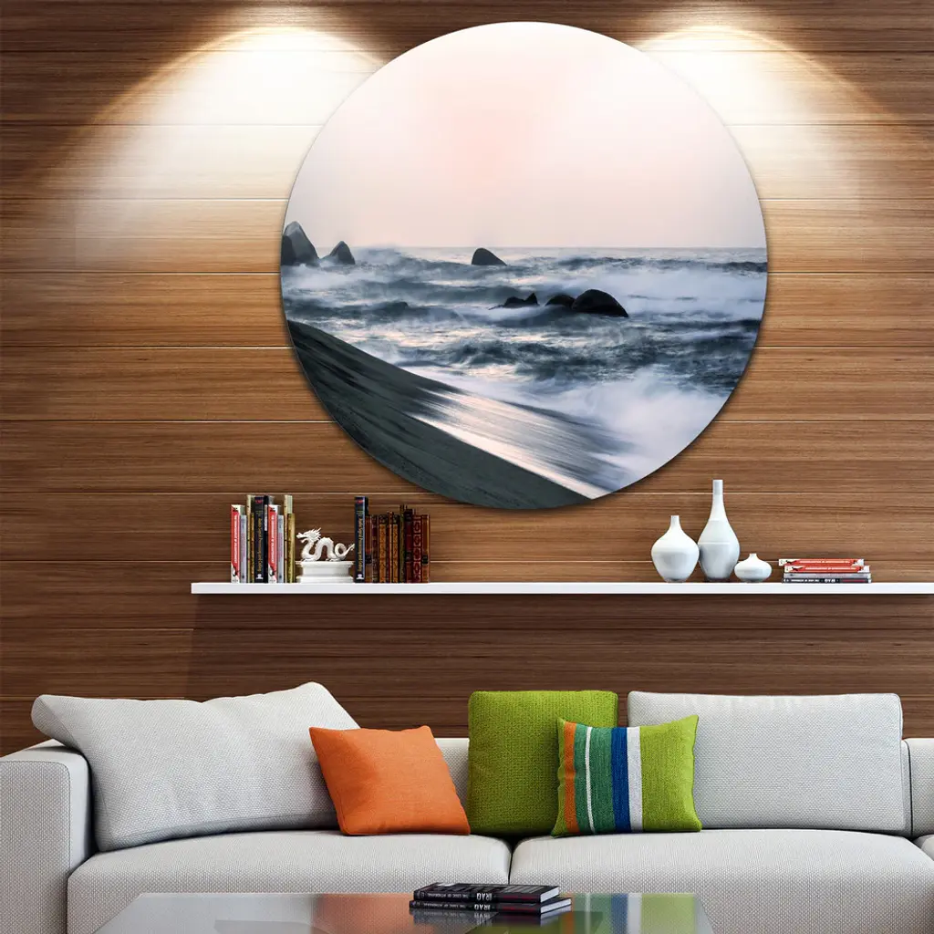 Wonderful Long Exposure Sea Waves, Beach Disc Metal Artwork, 23"