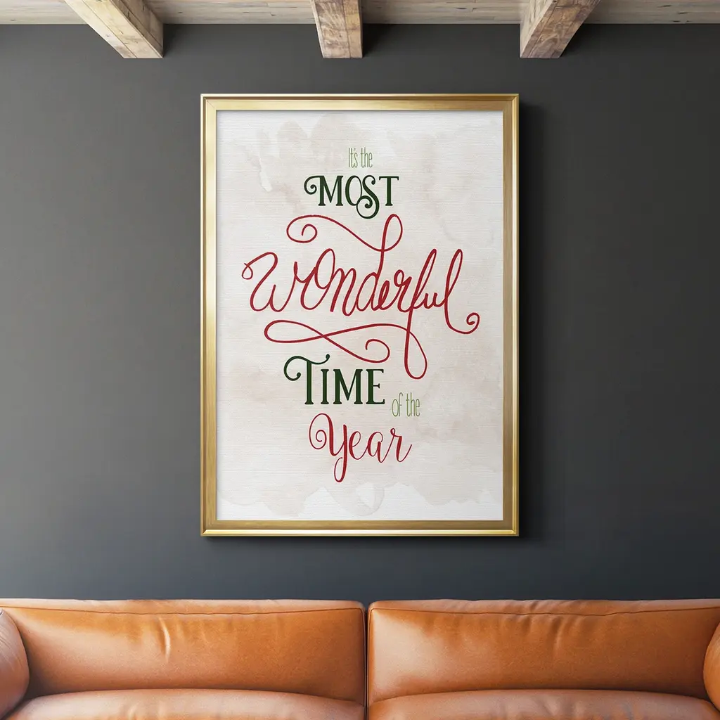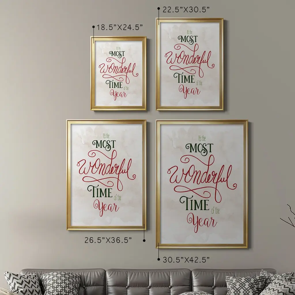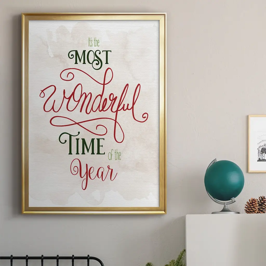 Wonderful Time of the Year Premium Framed Print - Ready to Hang A Premium Framed Print created to last. Framed in distressed wood and available in an array of sizes and colors Featuring a beveled a solid wood stretcher bar, each piece comes ready to hand 4 SIZES AVAILABLE 30.5''X42.5'' - Overall Size 26.5'X36.5'' - Overall Size 22.5''x30.5'' - Overall Size 18.5''x24.5'' - Overall Size Each piece is made to order. Each piece comes with hanging hardware. Made in the USA Ready to Hang