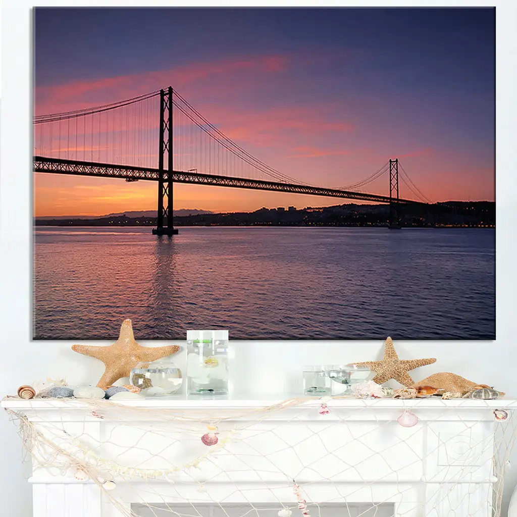 "Wonderful View Of Lisbon Bridge" Sea Pier And Bridge Wall Art Canvas, 32"x16"