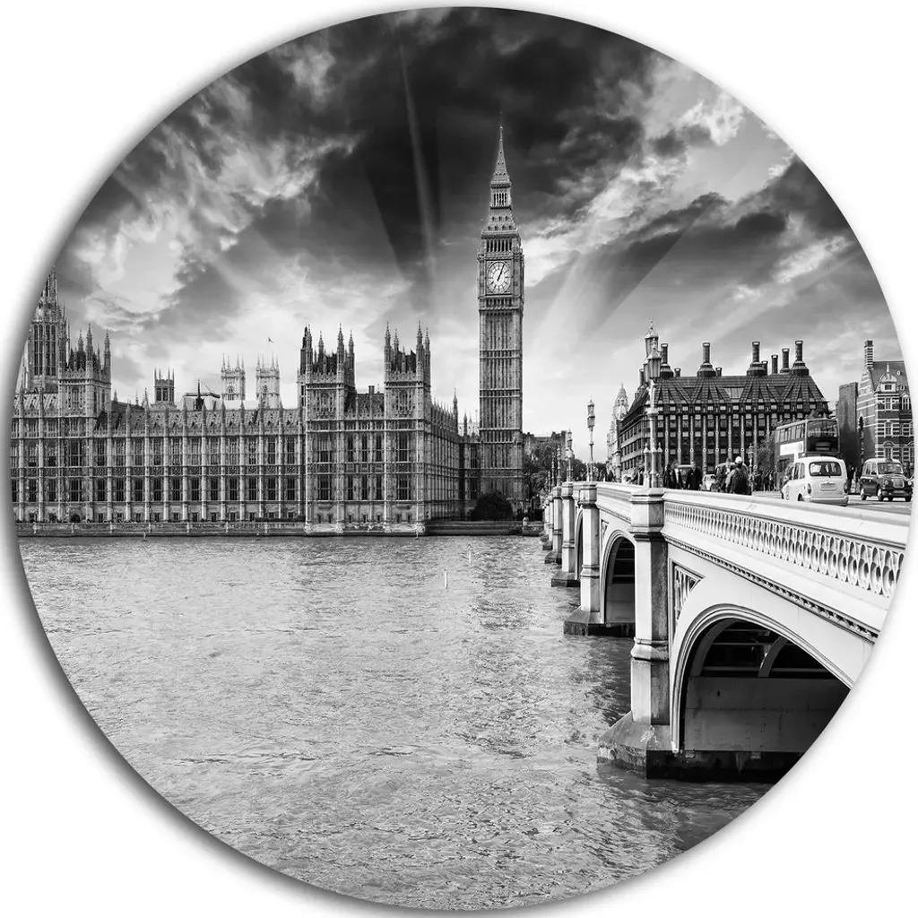 Bring Contemporary Abstraction to your home with this large Circle Metal wall art. This Wonderful View of Westminster Bridge Metal Artwork makes it the focal point of any room or office. - White Gloss Coating ensures colors are extra vibrant with light reflection.- Aluminum grade Sheet Metal with 1 inch mounting frame on the back giving the illusion that the artwork is floating on the wall..- Mounting Brackets are included along with instructions.- High Quality Digital images are created directly into a glossy aluminum panel producing a stunning and captivating print into the glossy finish of the metal.- Water, Fire and Scratch resistant HD Aluminum panels.- Looks better than any photo paper and guaranteed to last at least 20 years- Easy to clean with a microfiber cloth. Colors are far superior to regular Canvas Art. - Easy to Hang