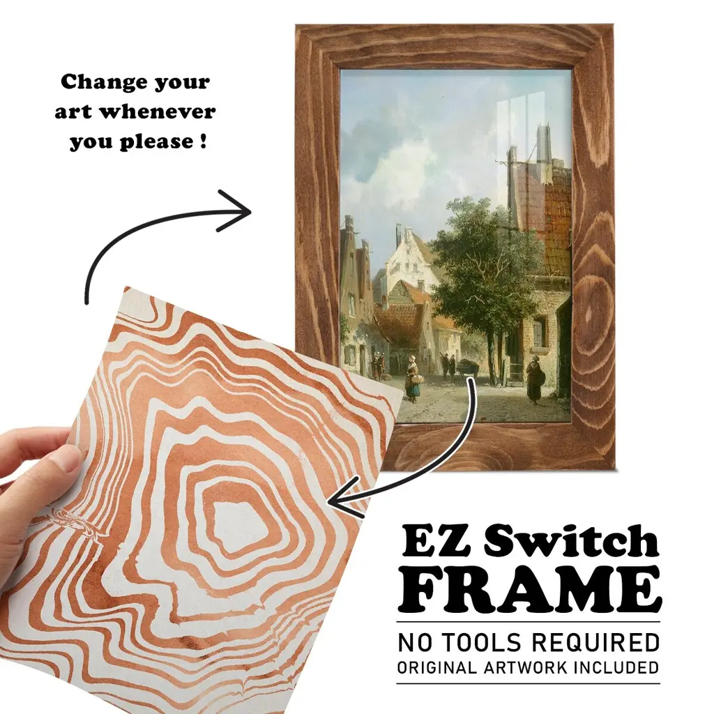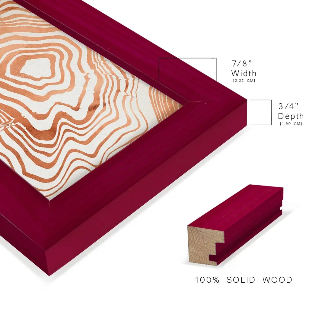 Wood Grain Suminagashi I -EZ SWITCH Framed Print w/glass-Cherry Red A delightful, framed print. Featuring a solid wood frame with real wood glass. This premium print is giclee quality. In addition, every frame features a removable back and table top stand. This allows you to change your art in the future or to just stand the art on a table for a new look. We are sure you'll enjoy our new series of EZ SWITCH Framed Art. Solid Wood Frame Real Glass Removable / Replaceable Art Built in Tabletop Stand Sizes range from 4x6 up to 12x15 - buy just one or pair them up as sets as you see fit.