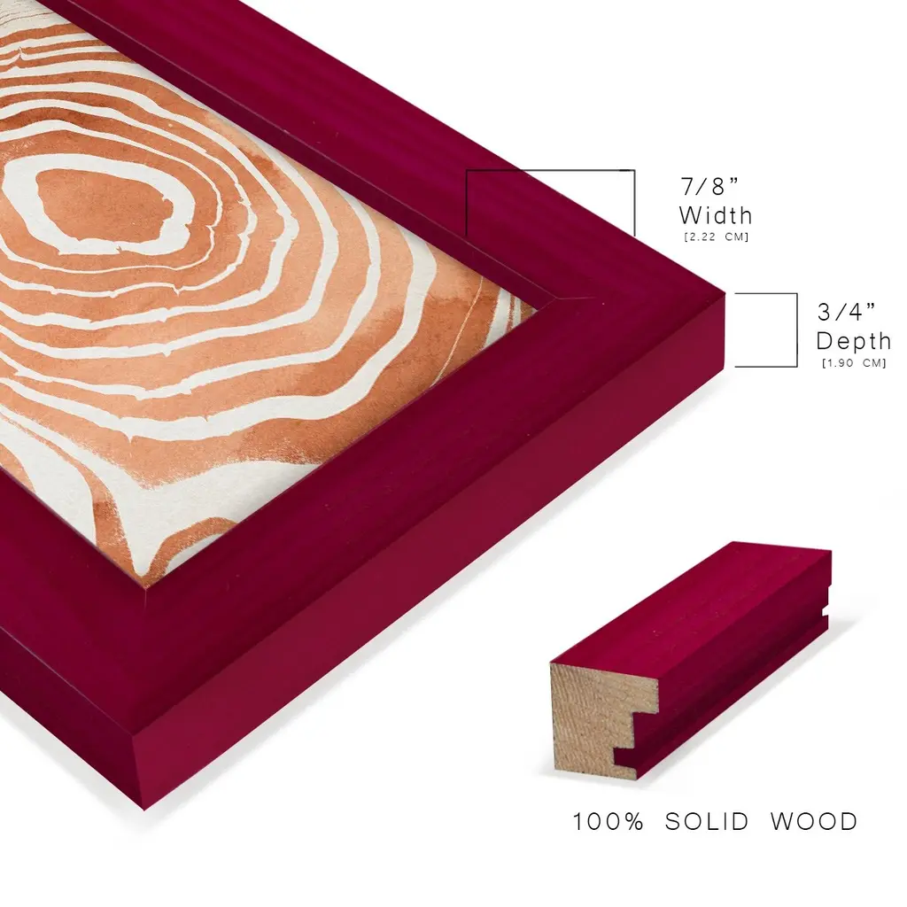 Wood Grain Suminagashi III -EZ SWITCH Framed Print w/glass-Cherry Red A delightful, framed print. Featuring a solid wood frame with real wood glass. This premium print is giclee quality. In addition, every frame features a removable back and table top stand. This allows you to change your art in the future or to just stand the art on a table for a new look. We are sure you'll enjoy our new series of EZ SWITCH Framed Art. Solid Wood Frame Real Glass Removable / Replaceable Art Built in Tabletop Stand Sizes range from 4x6 up to 12x15 - buy just one or pair them up as sets as you see fit.