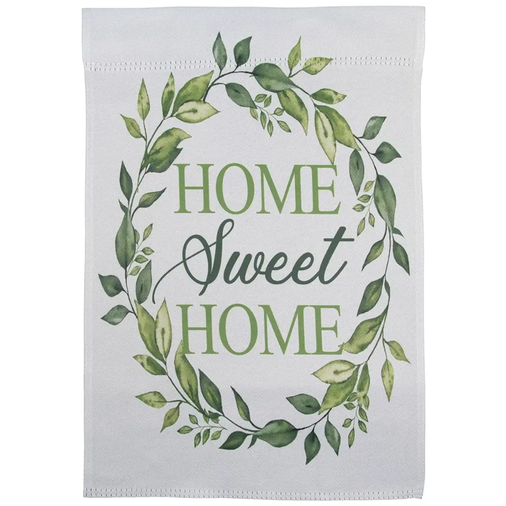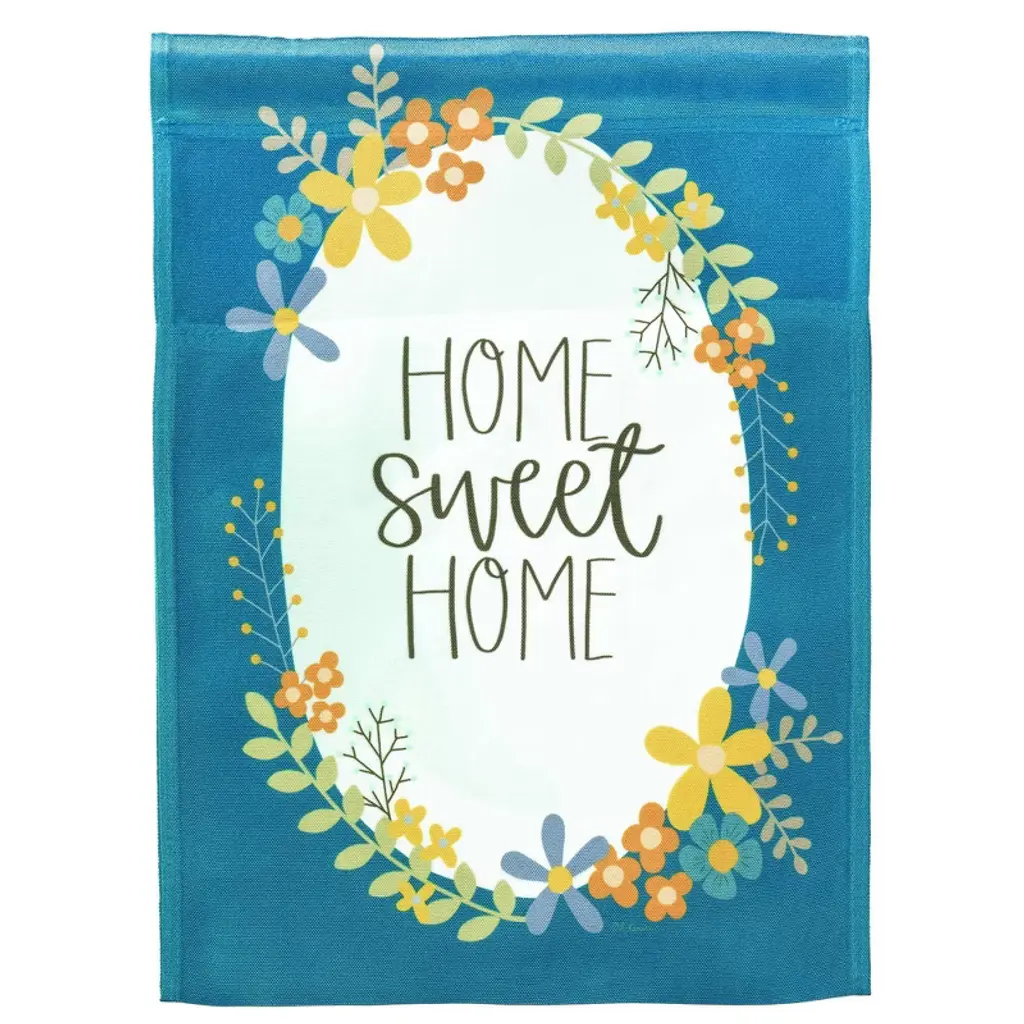 This Wood Grain Welcome Burlap Garden Flag features a rustic look and greeting to add to your outdoor space. A "Welcome To Our Home" message in striking, vintage-styled black letters stands out against a wood grain background with a bouquet of yellow flowers and foliage elegantly stitched at the top of the design for a pop of color. This flag is made of medium-weight, soft polyester burlap fabric that has the look and feel of real burlap. Artwork is heat transferred onto both sides of the textured fabric to create a natural, crafted look. The poly-burlap is a durable and weatherproof material that will not fade or fray after continued display.This flag features a sleeve for use with any standard flagpole or stand, sold separately.