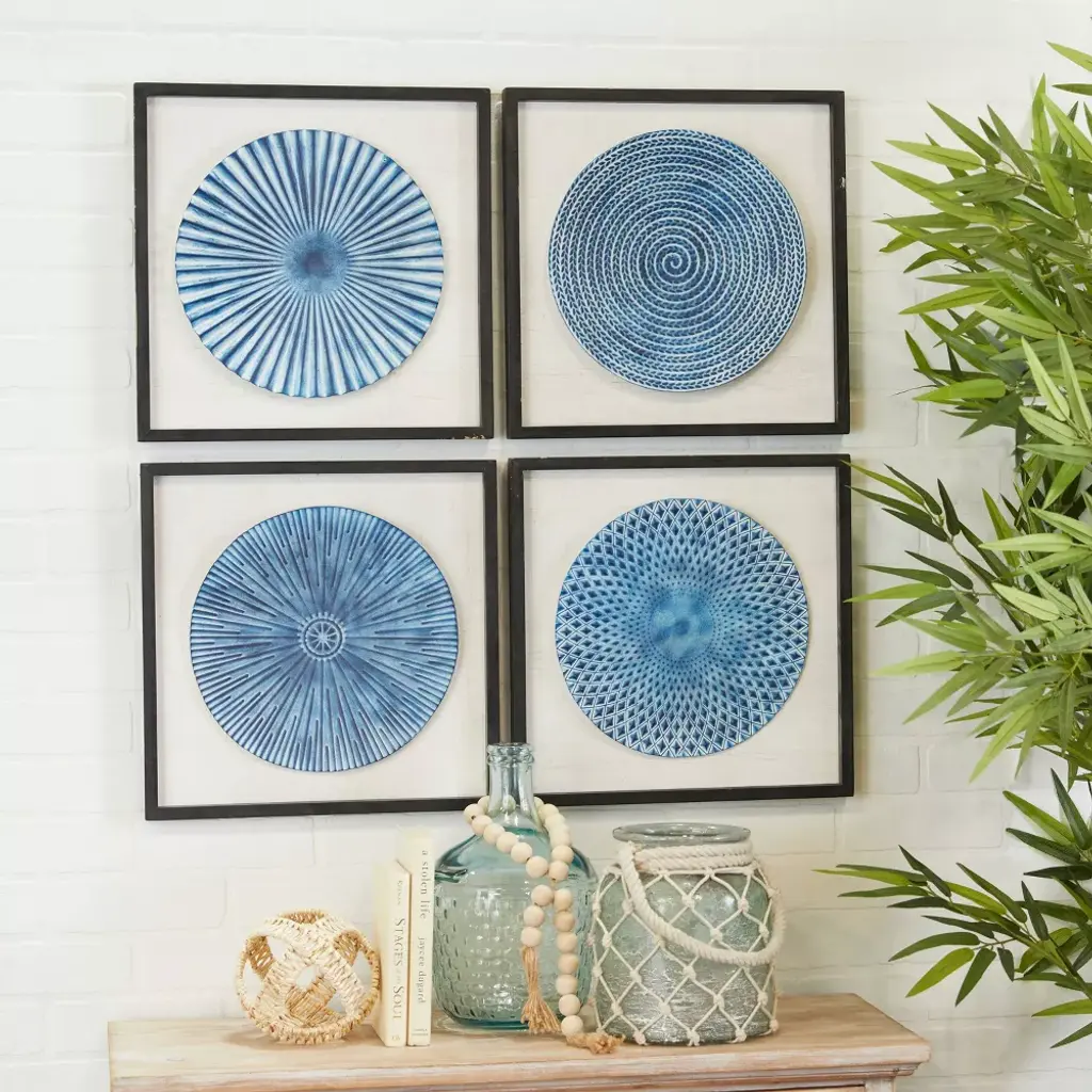 Wood Starburst Radial Plates Wall Art Set Of 4 With Black Frame - Olivia & May: Coastal Abstract Decor