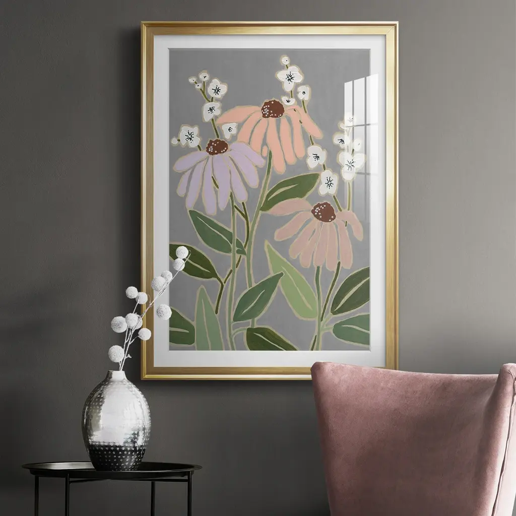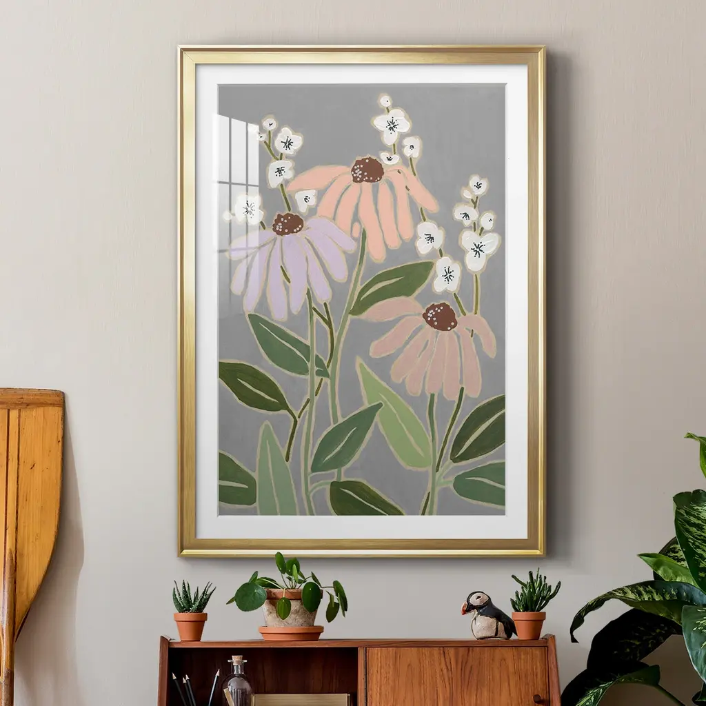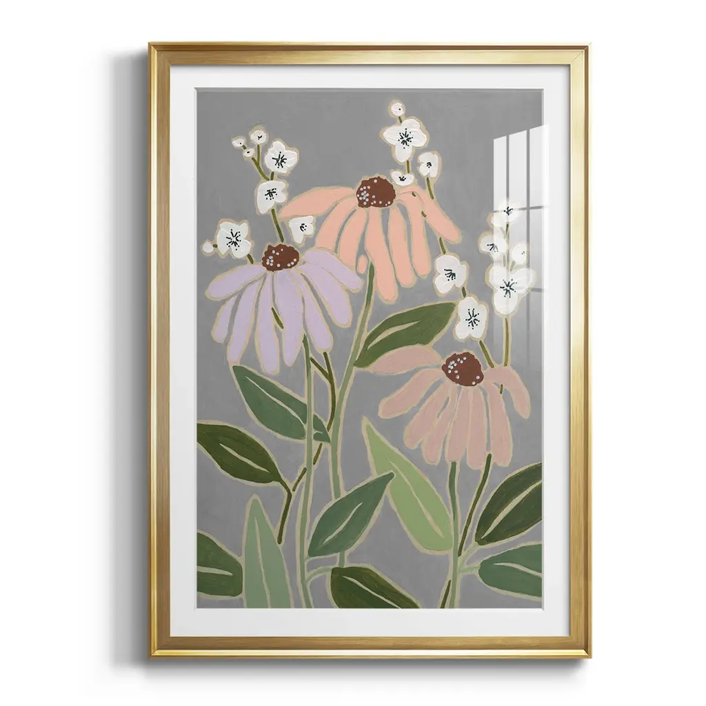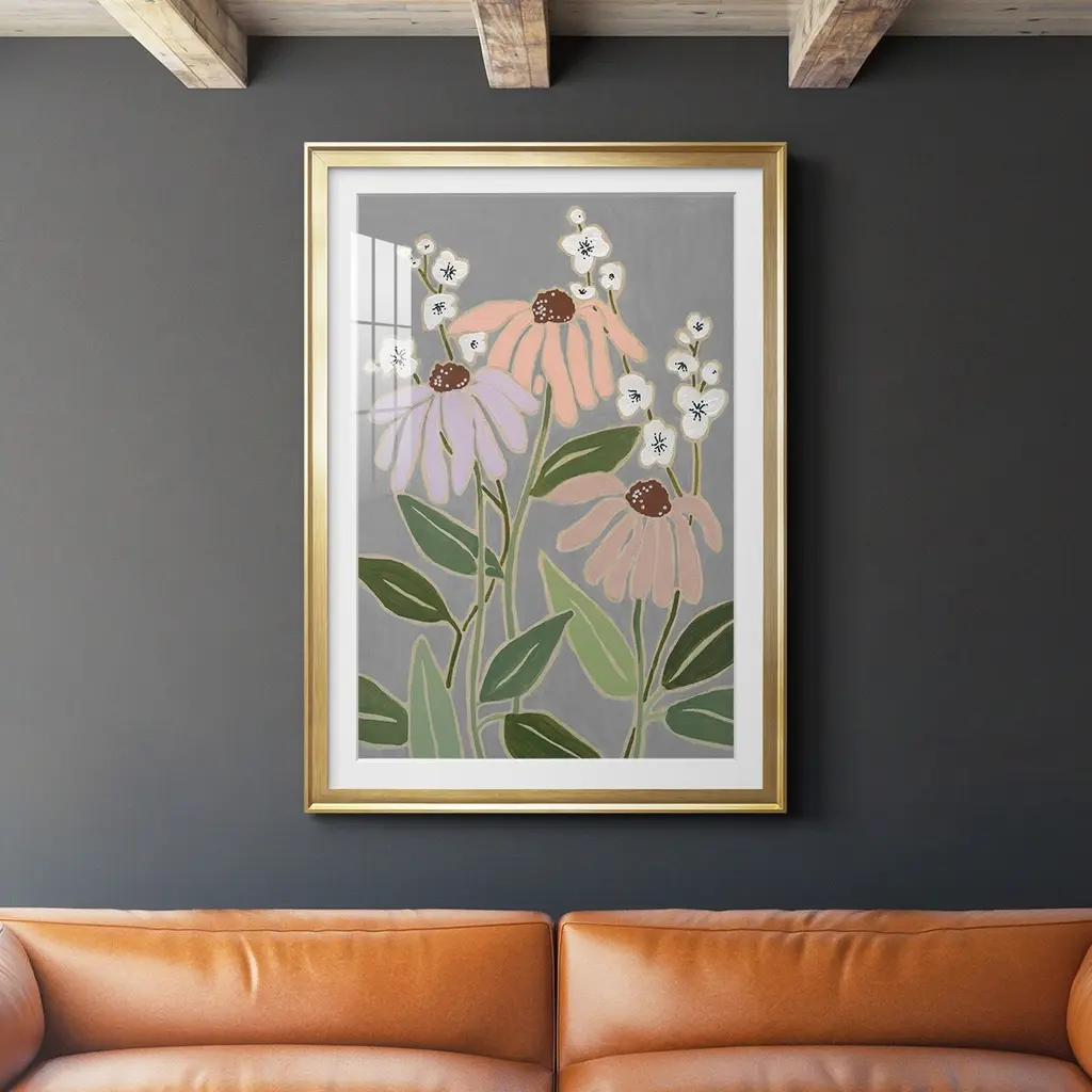 Woodblock Floral I Premium Framed Print - Ready to Hang A Premium Framed Print created to last. Framed in distressed wood and available in an array of sizes and colors Featuring a beveled a solid wood stretcher bar, each piece comes ready to hand 4 SIZES AVAILABLE 30.5''X42.5'' - Overall Size 26.5'X36.5'' - Overall Size 22.5''x30.5'' - Overall Size 18.5''x24.5'' - Overall Size Each piece is made to order. Each piece comes with hanging hardware. Made in the USA Ready to Hang Giclee Paper Print Acrylic Glass Beveled Matt Board