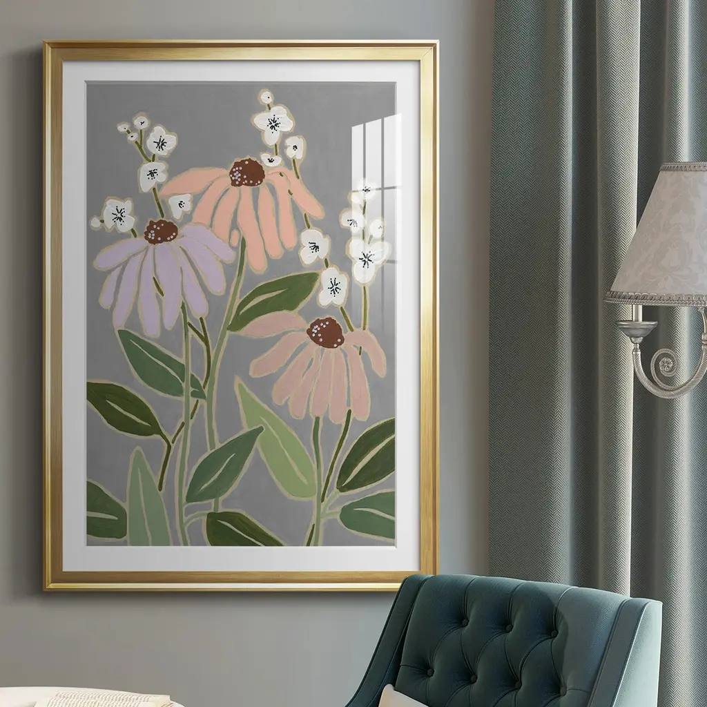 Woodblock Floral I Premium Framed Print - Ready To Hang - 26.5x36.5 - Silver