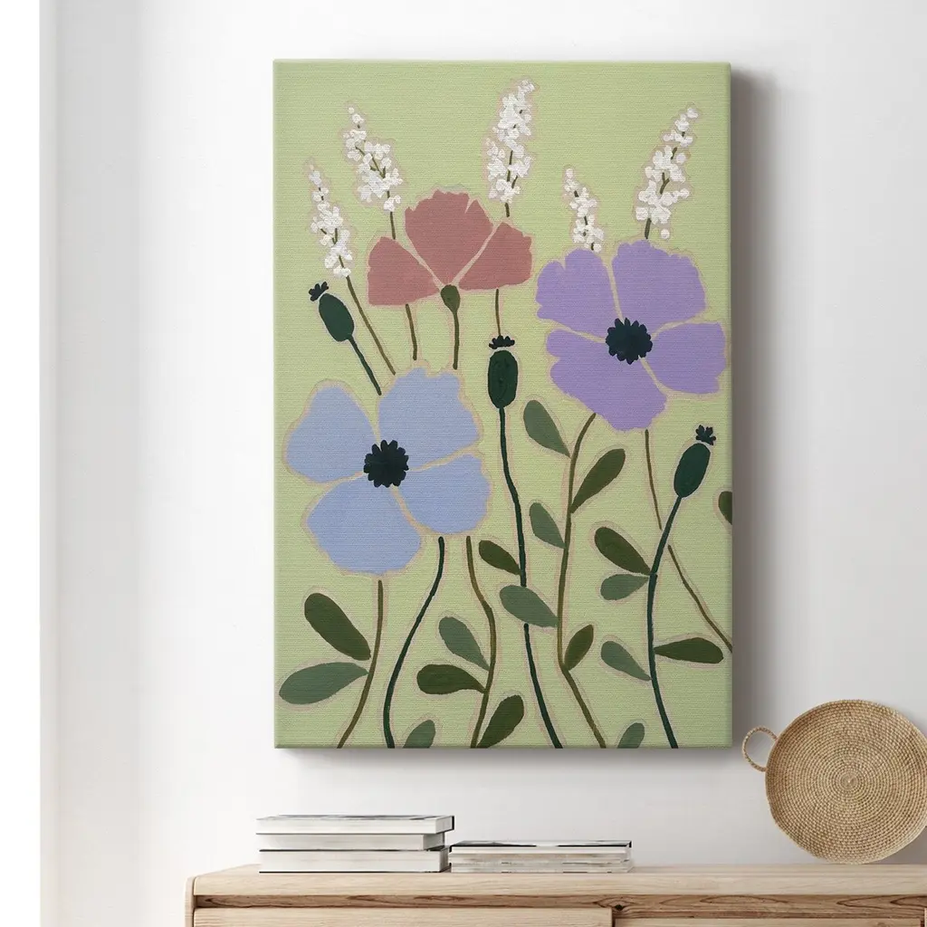 Woodblock Floral III Premium Gallery Wrapped Canvas - Ready to Hang A premium hand stretched gallery wrapped canvas print created to last. Featuring a beveled a solid wood stretcher bar, each piece comes ready to hand 6 SIZES AVAILABLE 8''X12'' - Overall Size 12''X18'' - Overall Size 18''X27'' - Overall Size 24''x36'' - Overall Size 32''x48'' - Overall Size 40''x60'' - Overall Size Each piece is made to order. Built to Last Each piece comes ready to hang Solid wood stretcher Fade and Water resistant Made domestically