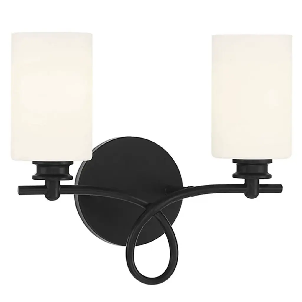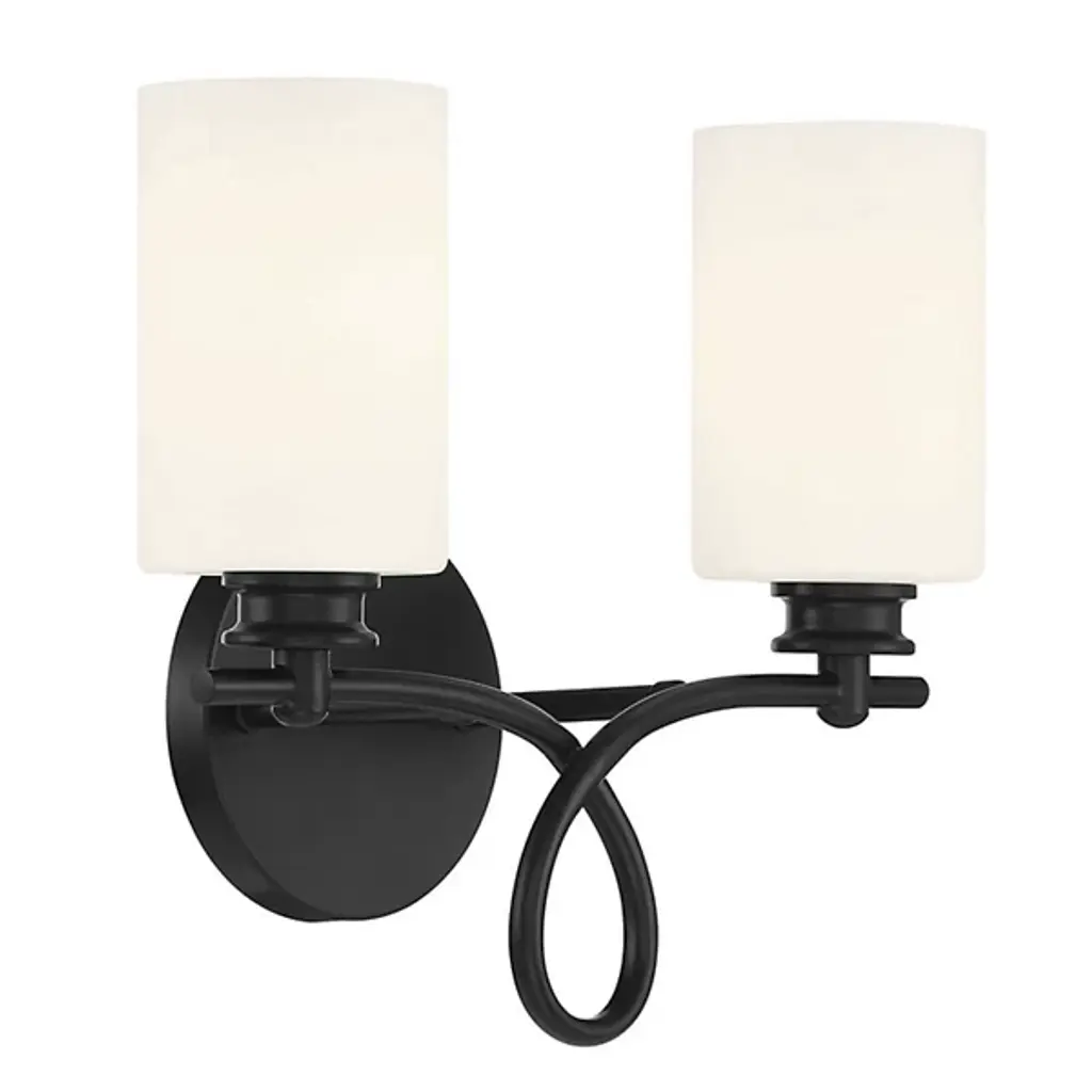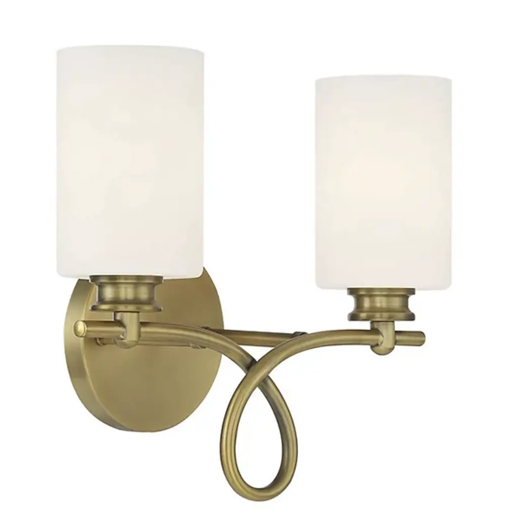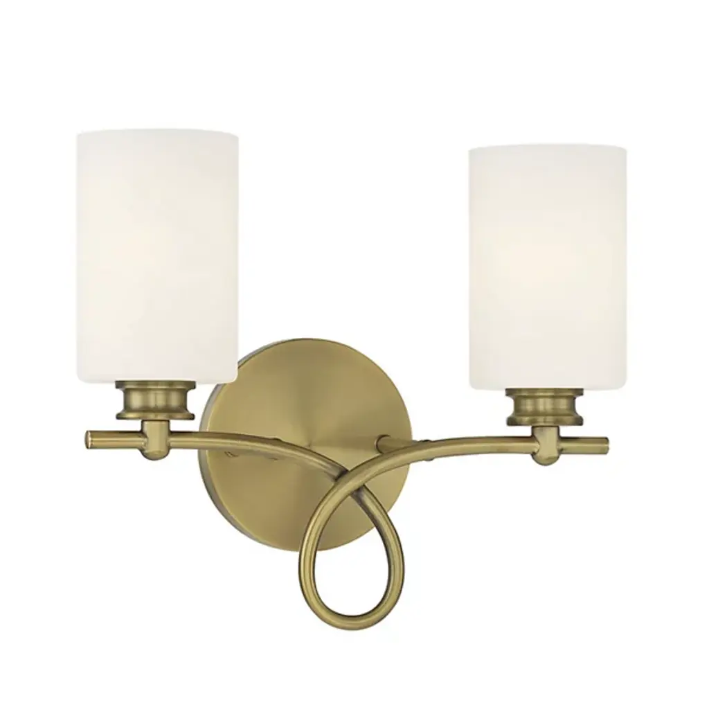 Twisting with elegance. The Woodbury Vanity Light from Savoy House treats you to a dynamic silhouette every time you freshen up. It mounts above your bathroom mirror in a clean circular metal backplate. The piece holds your gaze as a slender crossbar twists in a delightful silhouette. Standing over regal lamp holders, frosted glass shades bring together the design’s stylish two-tone look. The cylindrical forms surround the bulbs inside to bring you a glare-free lighting experience. Light tapers off through the glass, filling your bathroom with a rich, even glow.