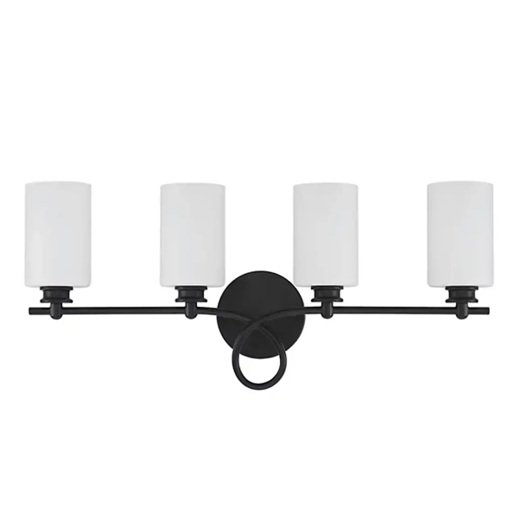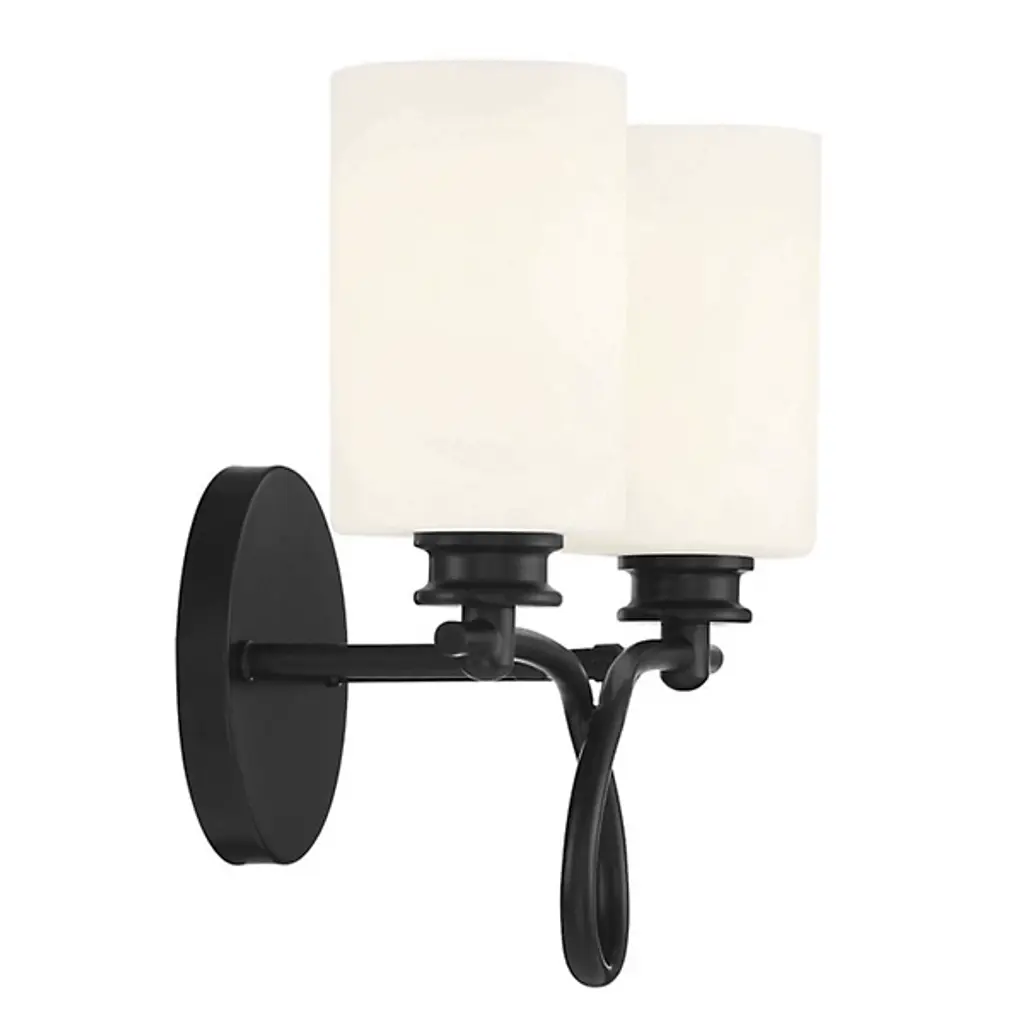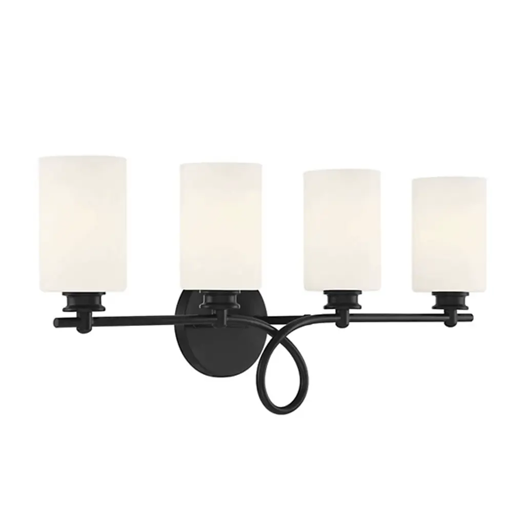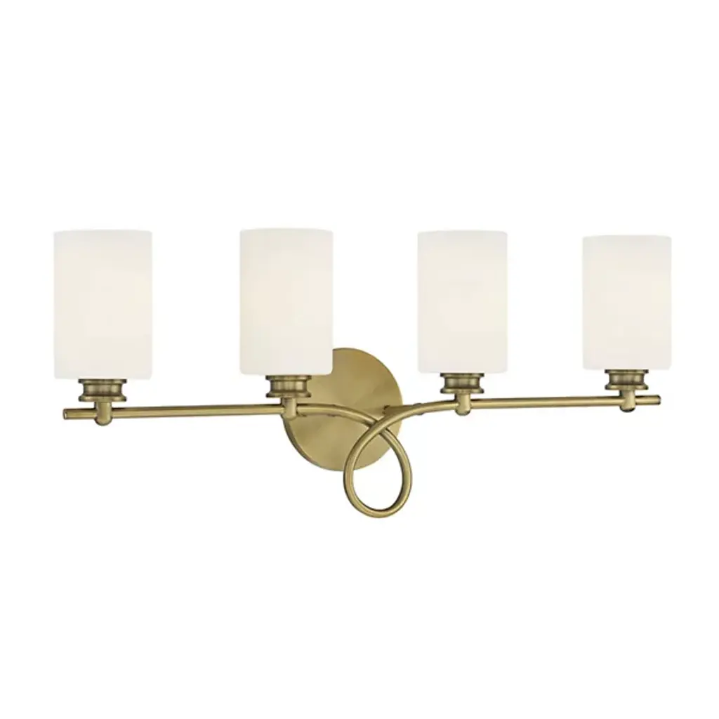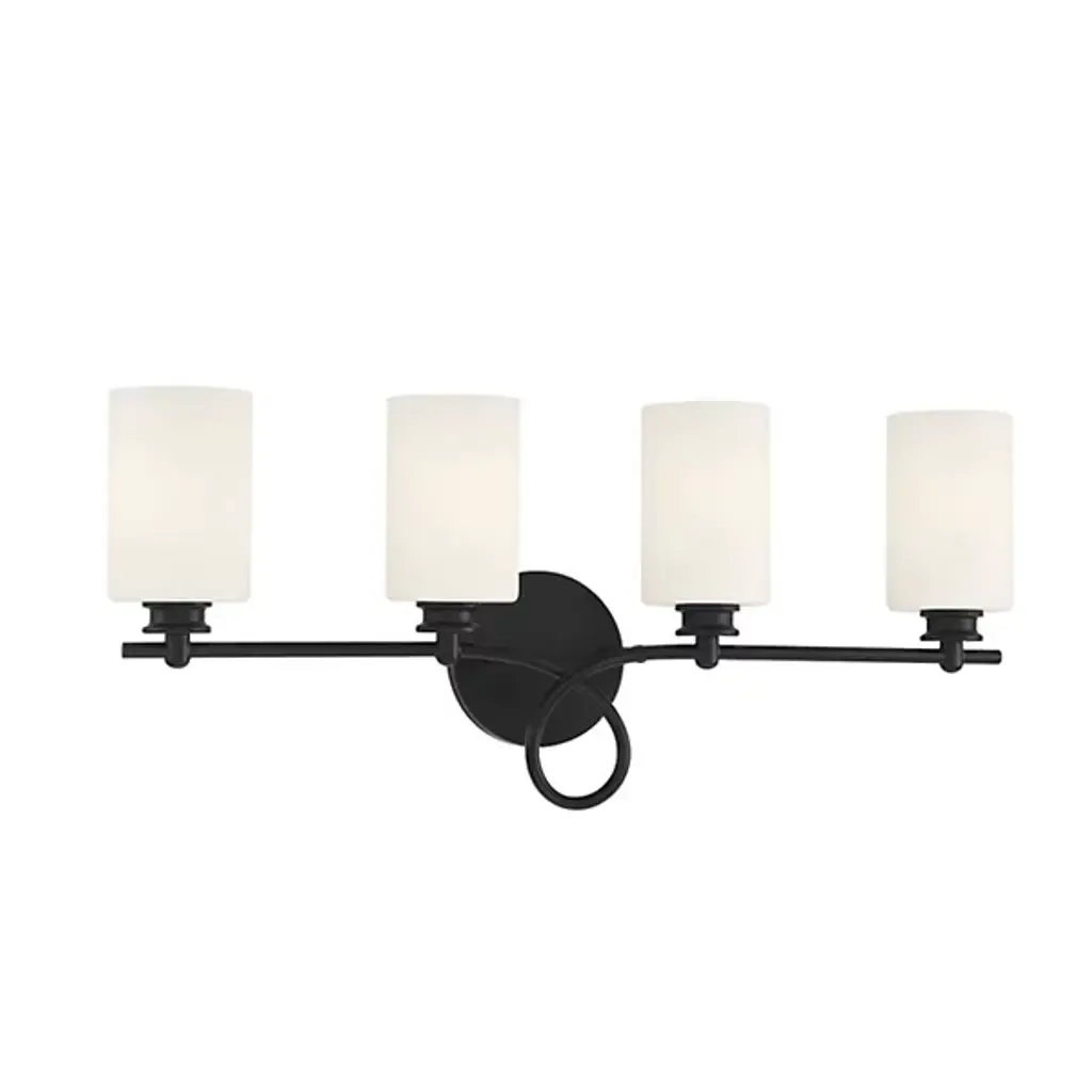 Twisting with elegance. The Woodbury Vanity Light from Savoy House treats you to a dynamic silhouette every time you freshen up. It mounts above your bathroom mirror in a clean circular metal backplate. The piece holds your gaze as a slender crossbar twists in a delightful silhouette. Standing over regal lamp holders, frosted glass shades bring together the design’s stylish two-tone look. The cylindrical forms surround the bulbs inside to bring you a glare-free lighting experience. Light tapers off through the glass, filling your bathroom with a rich, even glow.