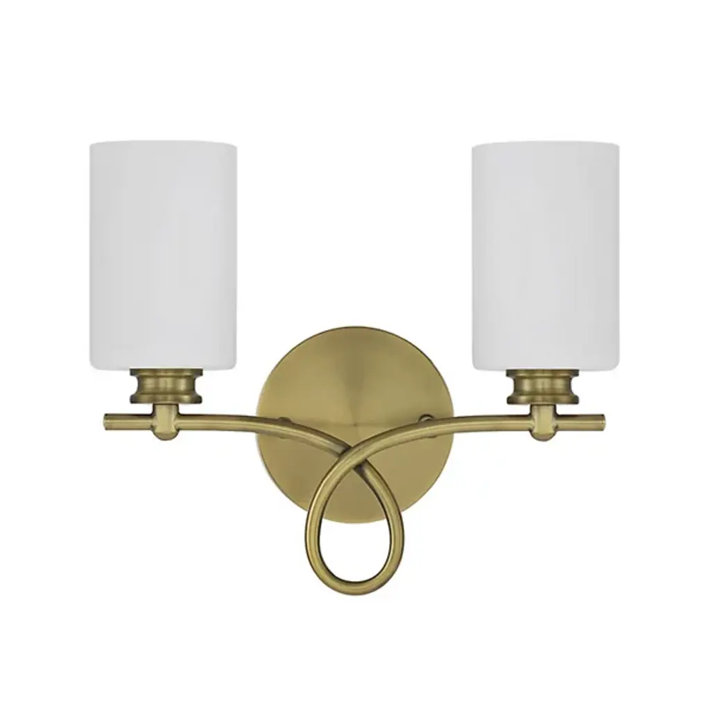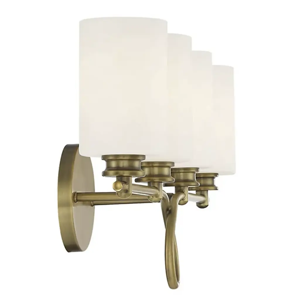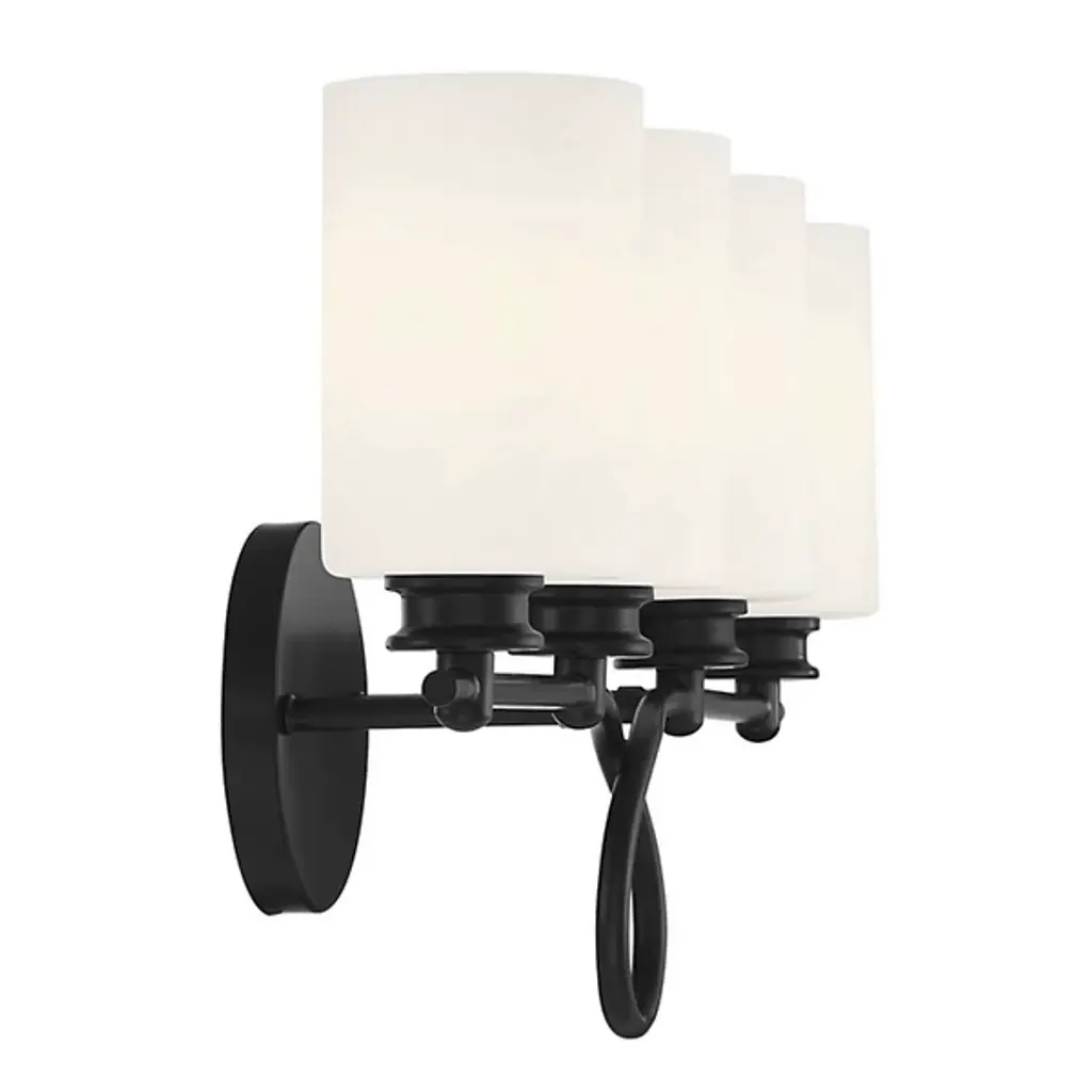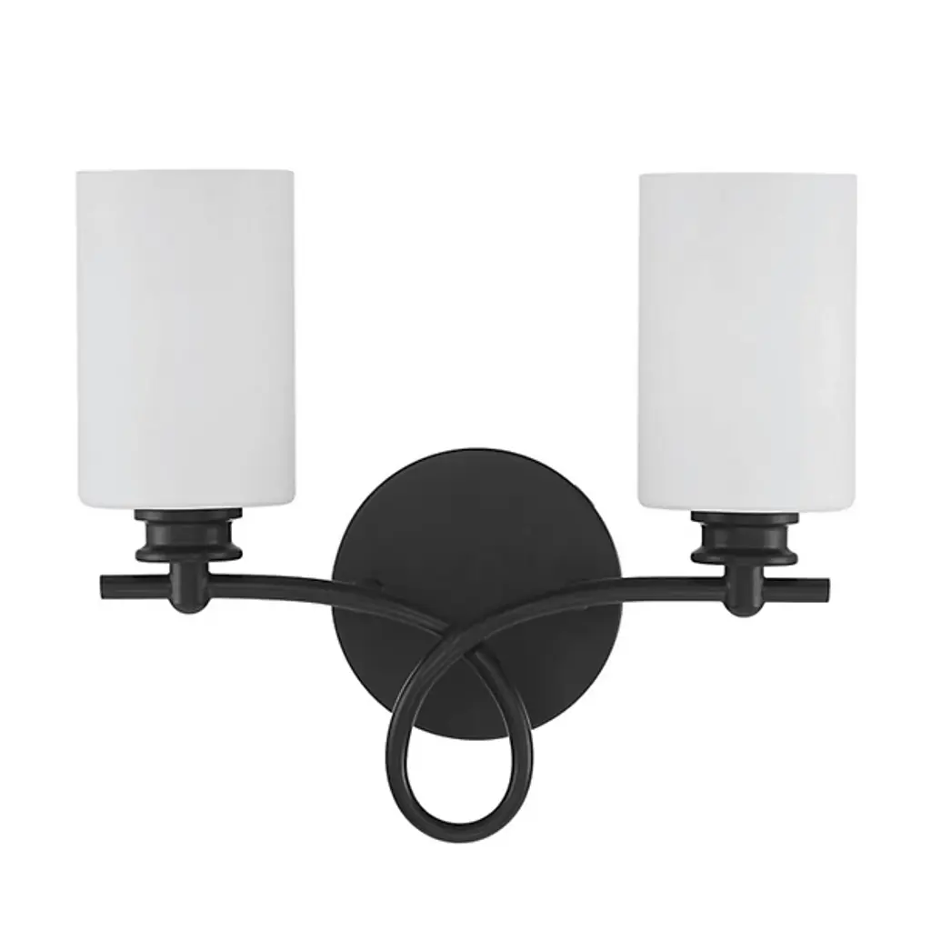 Twisting with elegance. The Woodbury Vanity Light from Savoy House treats you to a dynamic silhouette every time you freshen up. It mounts above your bathroom mirror in a clean circular metal backplate. The piece holds your gaze as a slender crossbar twists in a delightful silhouette. Standing over regal lamp holders, frosted glass shades bring together the design’s stylish two-tone look. The cylindrical forms surround the bulbs inside to bring you a glare-free lighting experience. Light tapers off through the glass, filling your bathroom with a rich, even glow.