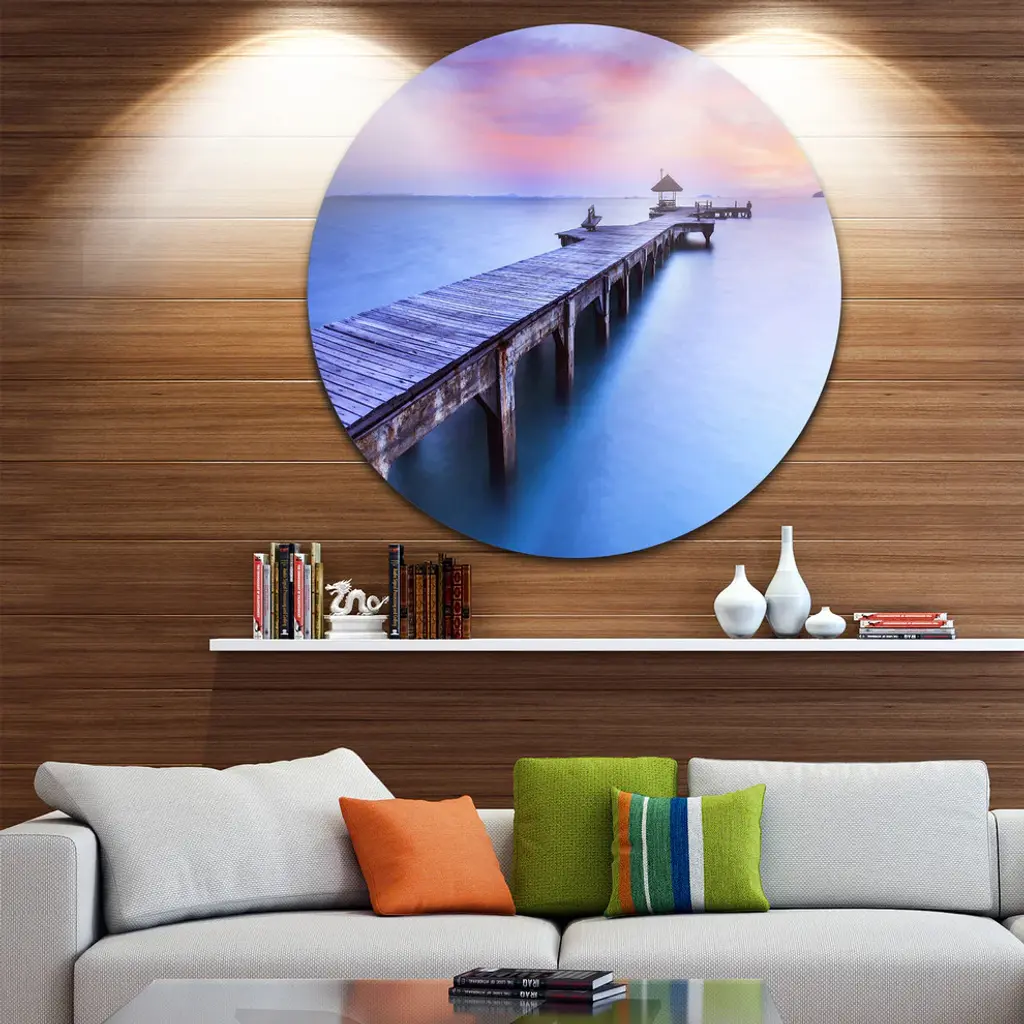 Wooden Bridge Over Blue Waters, Sea Pier Large Disc Metal Wall Art, 36"