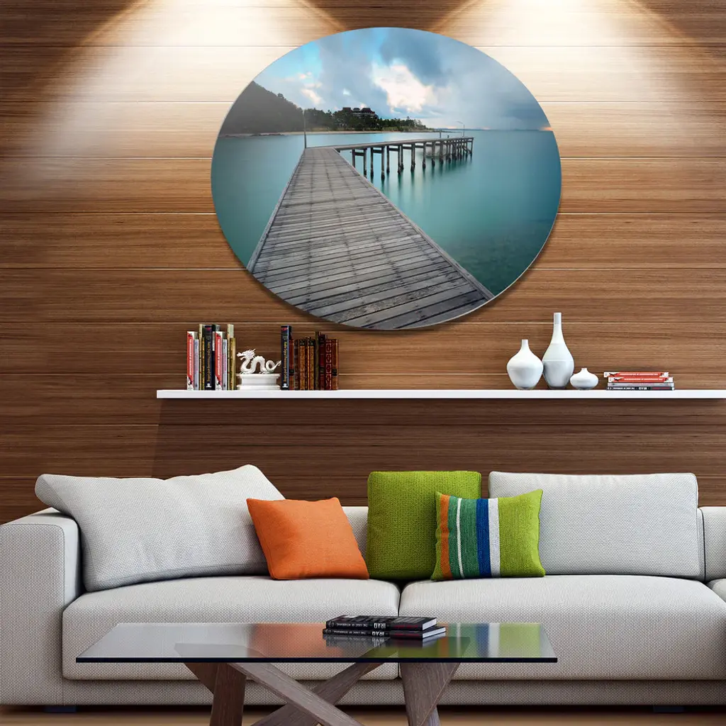 Wooden Bridge To Calm Ocean, Modern Bridge Round Wall Art, 23"