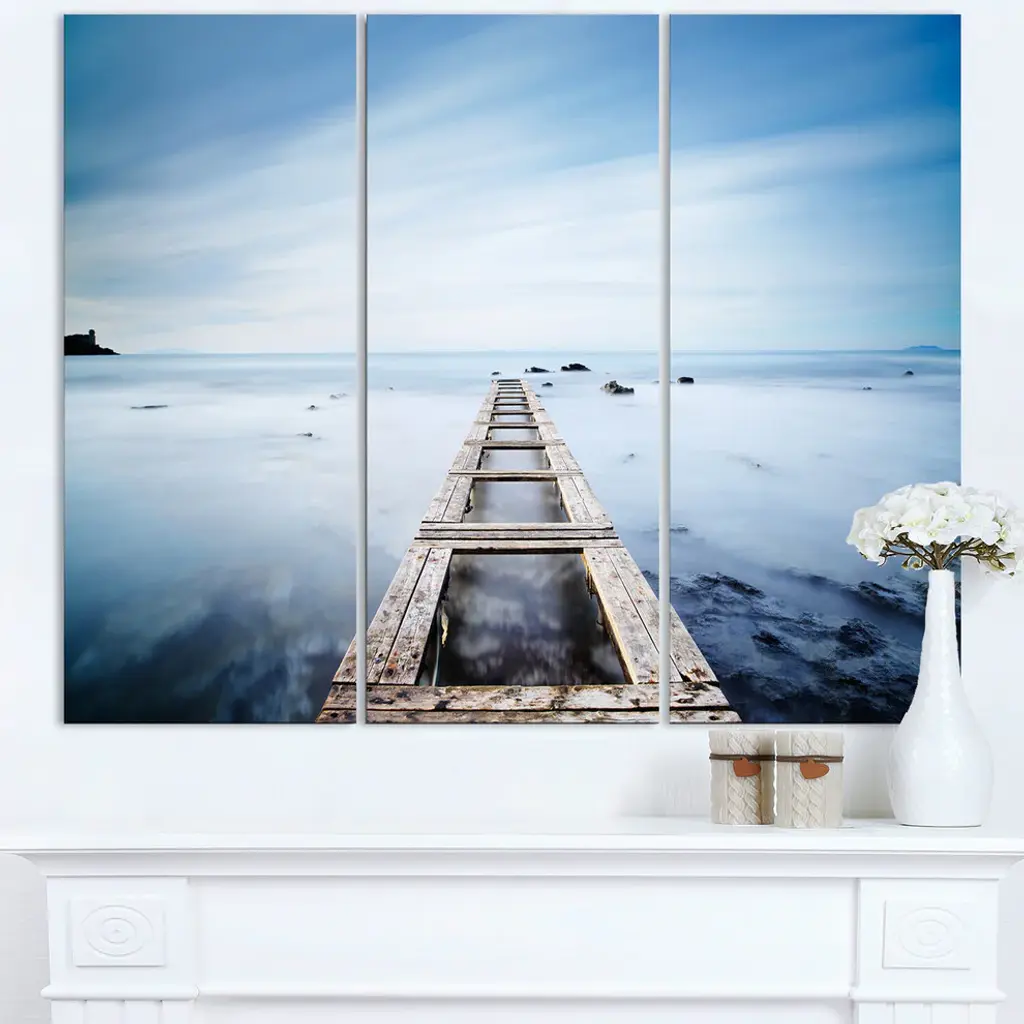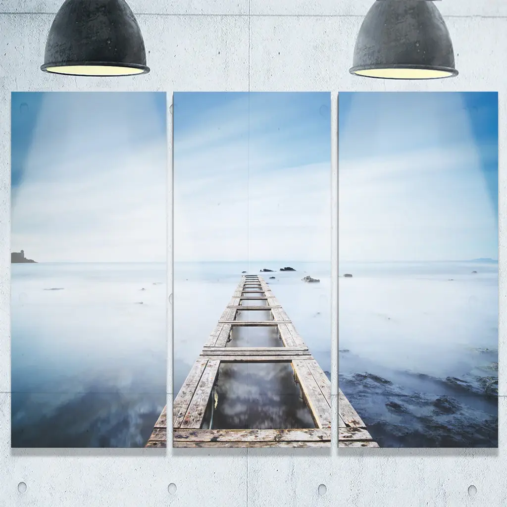 "Wooden Jetty In Morning Blue Sea" Metal Wall Art, 3 Panels, 36"x28"