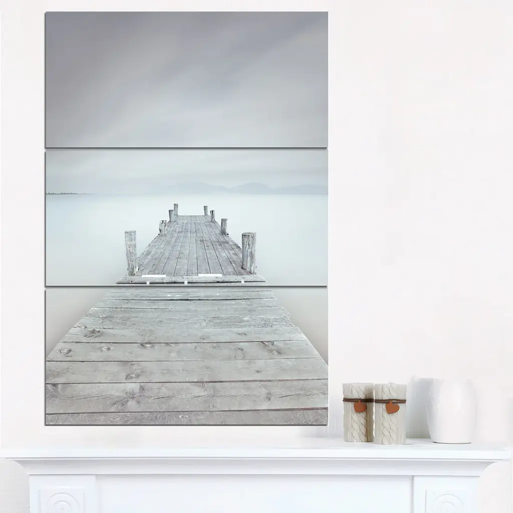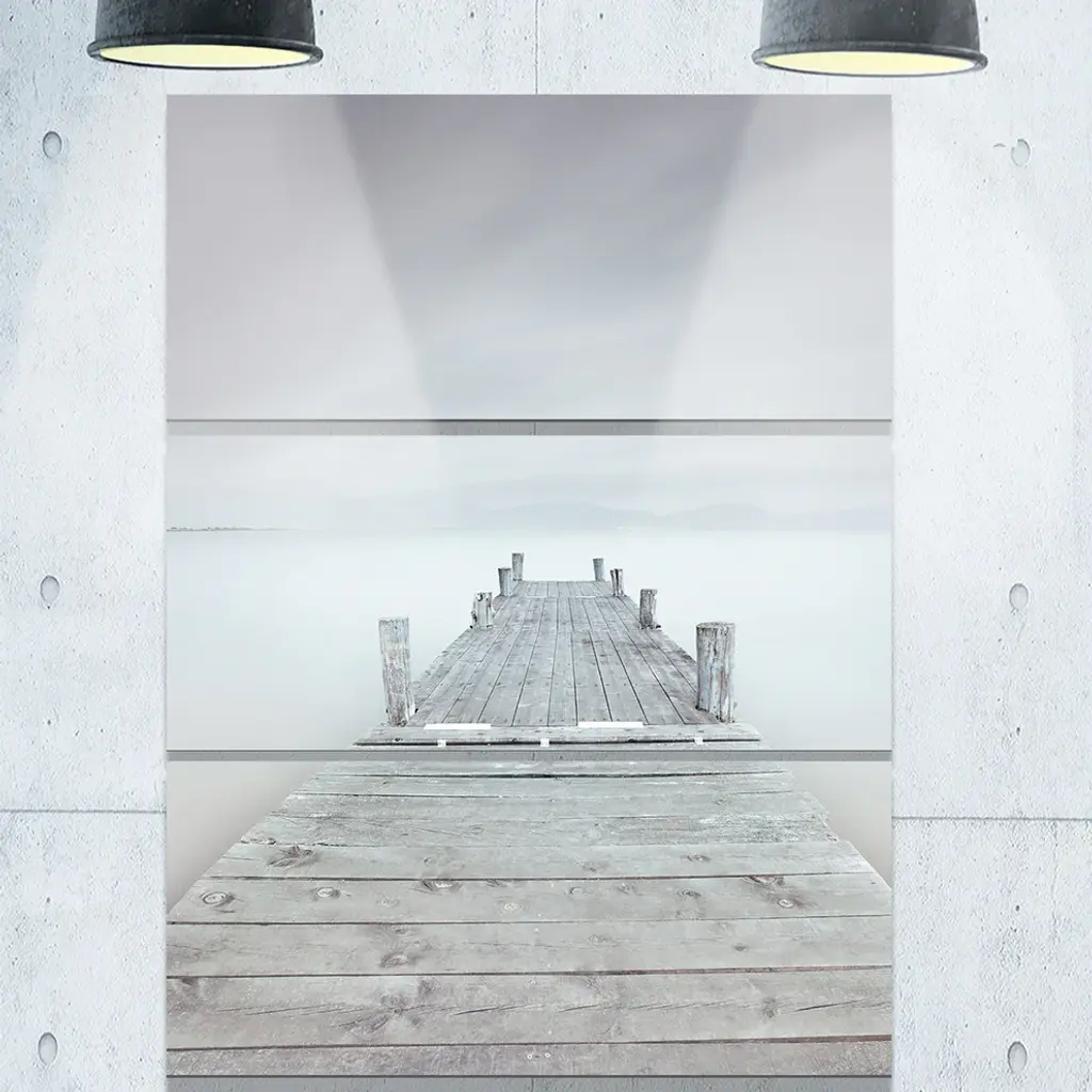 Bring contemporary abstraction to your home with this large 28W x 36H Metal Wall Art. This Wooden Pier in Cloudy Mood Metal Artwork makes it the focal point of any room or office. - White gloss coating ensures colors are extra vibrant with light reflection.- Aluminum grade sheet metal with 1-inch mounting frame on the back giving the illusion that the artwork is floating on the wall.- Mounting brackets are included along with instructions.- High quality digital images are created directly into a glossy aluminum panel producing a stunning and captivating print into the glossy finish of the metal.- Water, fire and scratch resistant HD aluminum panels.- Looks better than any photo paper and guaranteed to last at least 20 years- Easy to clean with a microfiber cloth. Colors are far superior to regular canvas art. - Easy to hang