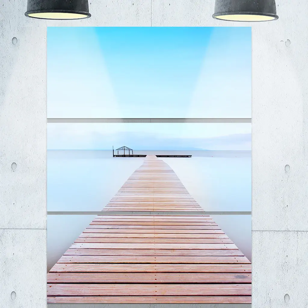 Bring contemporary abstraction to your home with this large 28W x 36H Metal Wall Art. This Wooden Pier in Cold Atmosphere Metal Artwork makes it the focal point of any room or office. - White gloss coating ensures colors are extra vibrant with light reflection.- Aluminum grade sheet metal with 1-inch mounting frame on the back giving the illusion that the artwork is floating on the wall.- Mounting brackets are included along with instructions.- High quality digital images are created directly into a glossy aluminum panel producing a stunning and captivating print into the glossy finish of the metal.- Water, fire and scratch resistant HD aluminum panels.- Looks better than any photo paper and guaranteed to last at least 20 years- Easy to clean with a microfiber cloth. Colors are far superior to regular canvas art. - Easy to hang