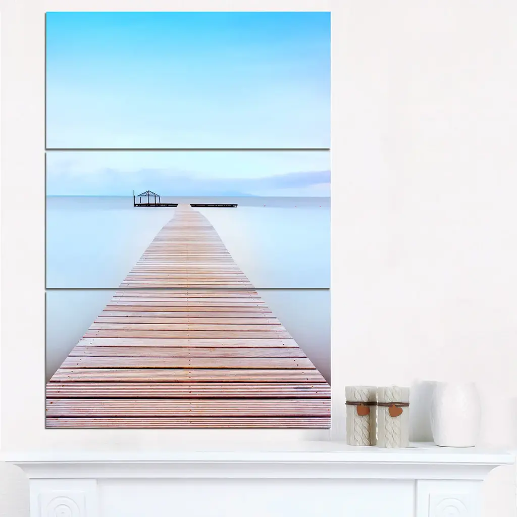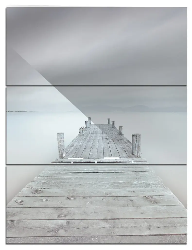 "Wooden Pier In Cold Atmosphere" Photo Metal Wall Art, 3 Panels, 28"x36"