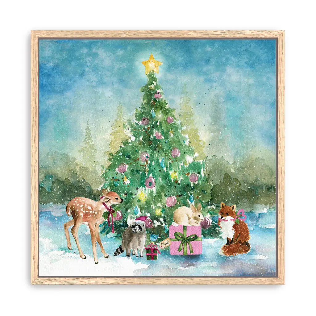 Woodland Christmas Canvas Giclee - Framed / Black / 40x40