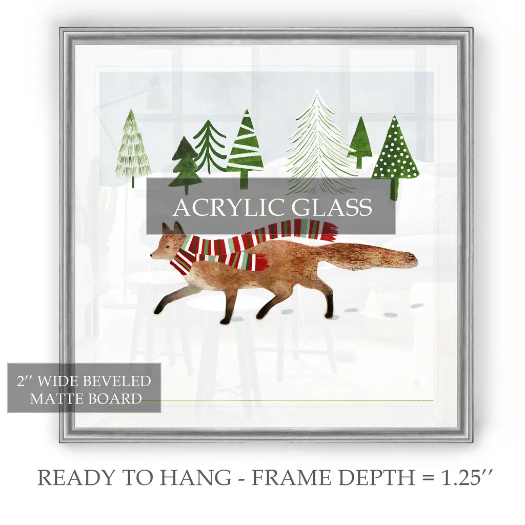 Woodland Christmas II -Black Framed Print A premium Black Framed giclee print Featuring a beveled a matt , acrylic glass, and a high quality giclee print 5 SIZES AVAILABLE 34''x34''- Overall Size 30''x30'' - Overall Size 26''x26''' - Overall Size 22''x22''' - Overall Size 18''x18''' - Overall Size Each piece is made to order. Built to Last Each piece comes ready to hang Fade and Water resistant Made domestically