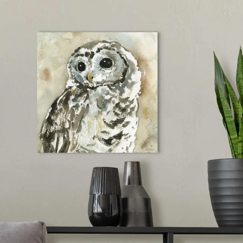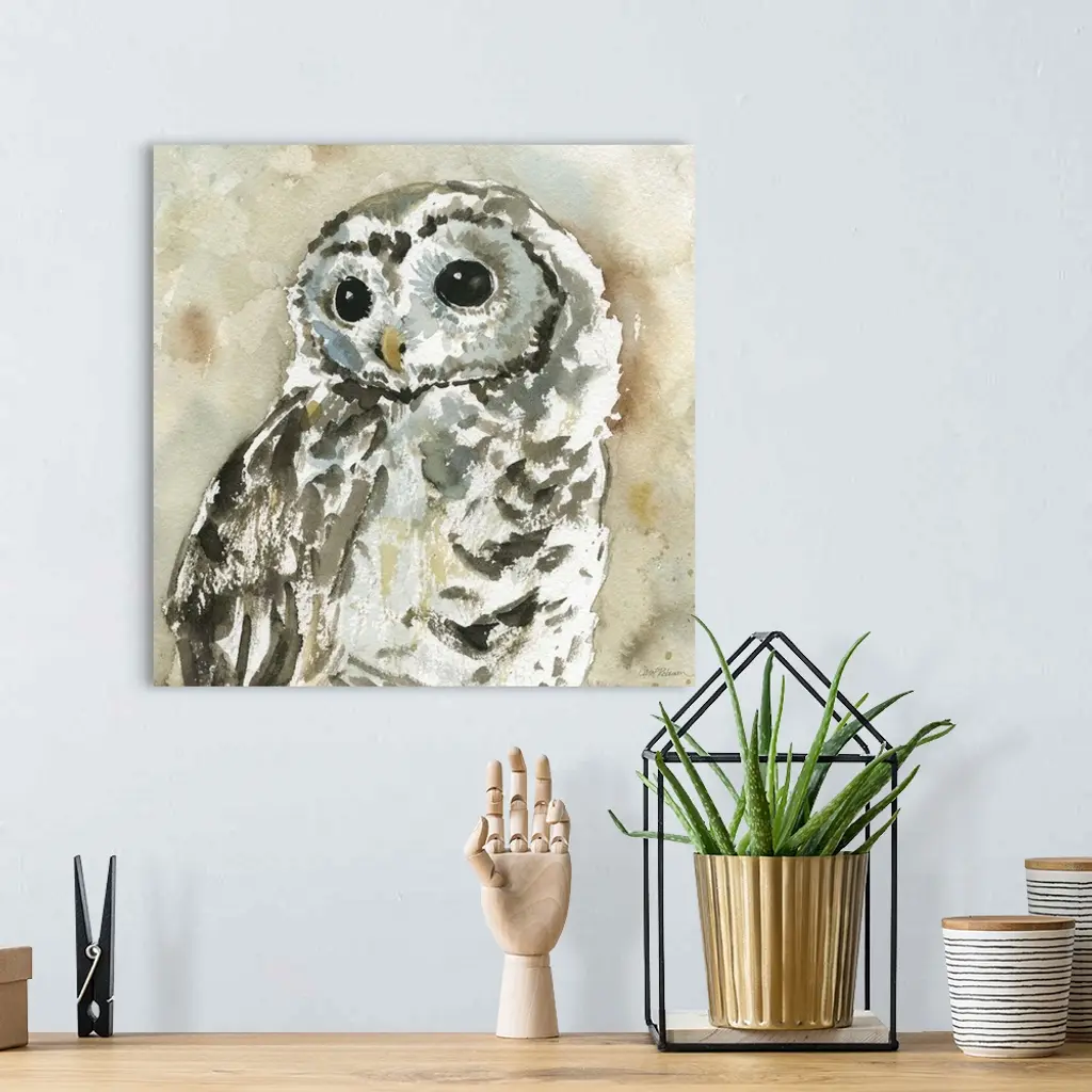 A watercolor painting of an abstract woodland owl.