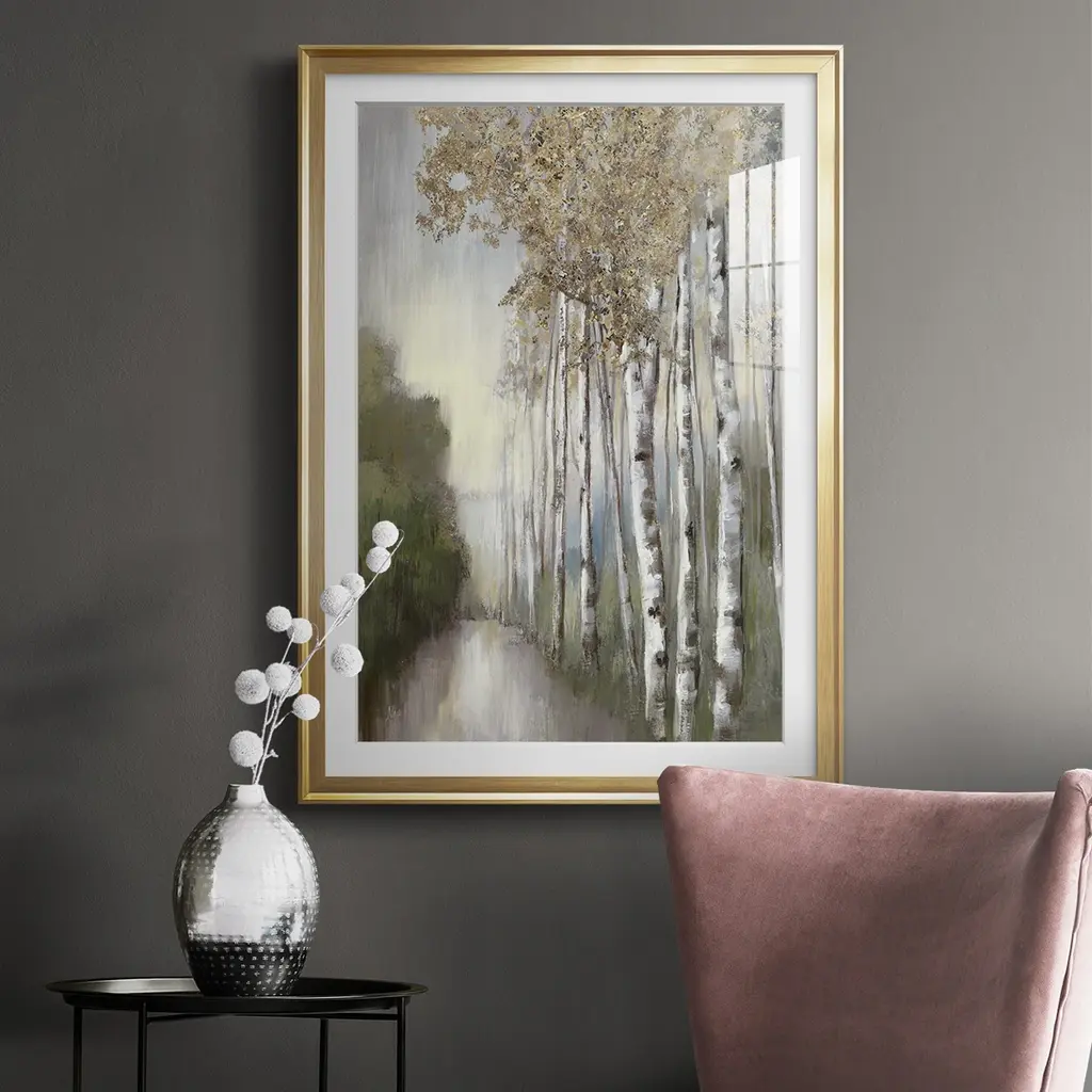 Woodland Walk Neutral Premium Framed Print - Ready to Hang A Premium Framed Print created to last. Framed in distressed wood and available in an array of sizes and colors Featuring a beveled a solid wood stretcher bar, each piece comes ready to hand 4 SIZES AVAILABLE 30.5''X42.5'' - Overall Size 26.5'X36.5'' - Overall Size 22.5''x30.5'' - Overall Size 18.5''x24.5'' - Overall Size Each piece is made to order. Each piece comes with hanging hardware. Made in the USA Ready to Hang Giclee Paper Print Acrylic Glass Beveled Matt Board