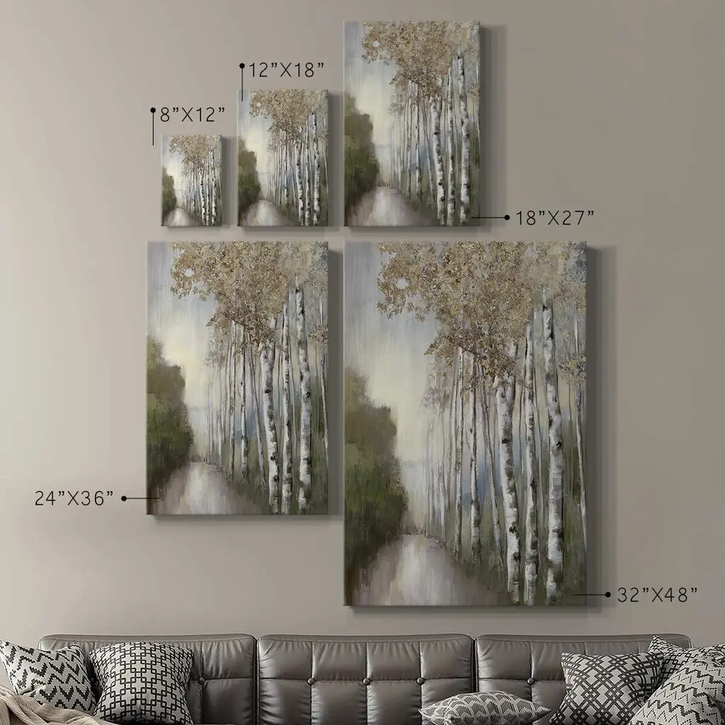 Woodland Walk Neutral Premium Gallery Wrapped Canvas - Ready to Hang A premium hand stretched gallery wrapped canvas print created to last. Featuring a beveled a solid wood stretcher bar, each piece comes ready to hand 6 SIZES AVAILABLE 8''X12'' - Overall Size 12''X18'' - Overall Size 18''X27'' - Overall Size 24''x36'' - Overall Size 32''x48'' - Overall Size 40''x60'' - Overall Size Each piece is made to order. Built to Last Each piece comes ready to hang Solid wood stretcher Fade and Water resistant Made domestically