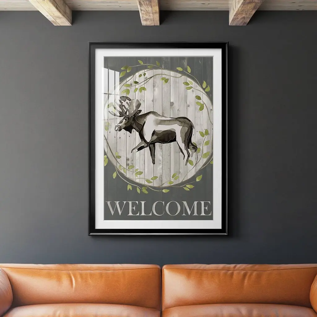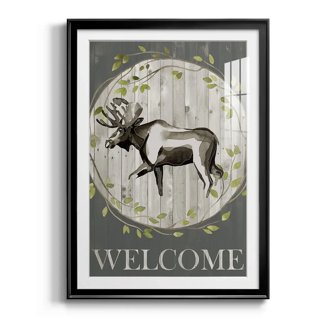Woodland Welcome IV Premium Framed Print - Ready to Hang A Premium Framed Print created to last. Framed in distressed wood and available in an array of sizes and colors Featuring a beveled a solid wood stretcher bar, each piece comes ready to hand 4 SIZES AVAILABLE 30.5''X42.5'' - Overall Size 26.5'X36.5'' - Overall Size 22.5''x30.5'' - Overall Size 18.5''x24.5'' - Overall Size Each piece is made to order. Each piece comes with hanging hardware. Made in the USA Ready to Hang Giclee Paper Print Acrylic Glass Beveled Matt Board