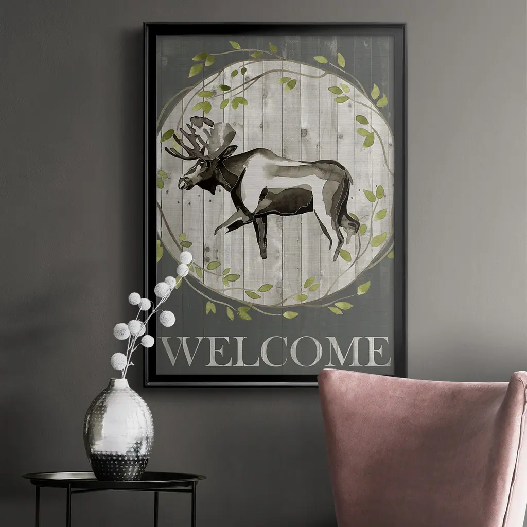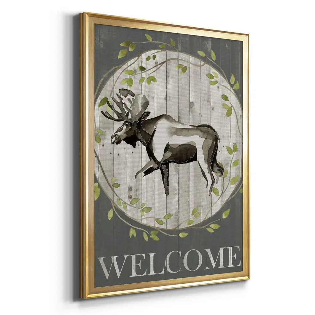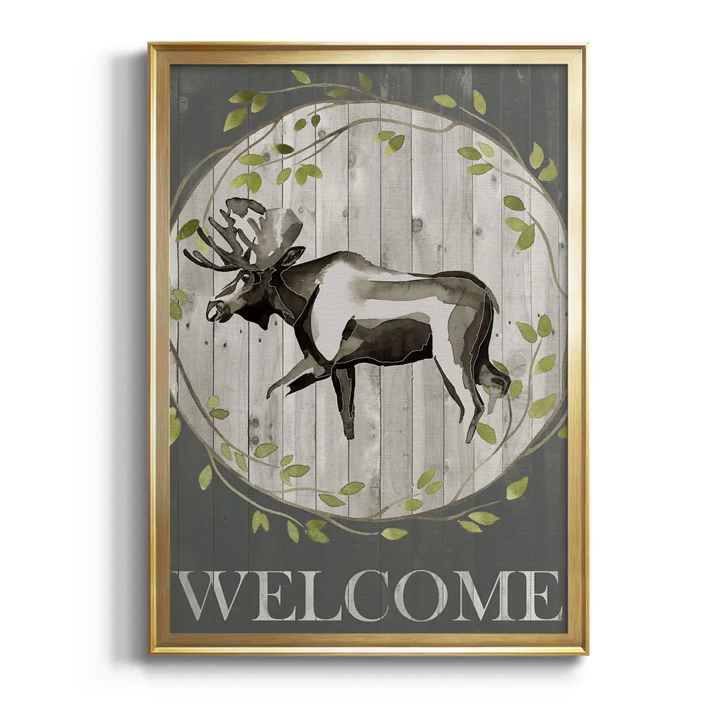 Woodland Welcome IV Premium Framed Print - Ready to Hang A Premium Framed Print created to last. Framed in distressed wood and available in an array of sizes and colors Featuring a beveled a solid wood stretcher bar, each piece comes ready to hand 4 SIZES AVAILABLE 30.5''X42.5'' - Overall Size 26.5'X36.5'' - Overall Size 22.5''x30.5'' - Overall Size 18.5''x24.5'' - Overall Size Each piece is made to order. Each piece comes with hanging hardware. Made in the USA Ready to Hang