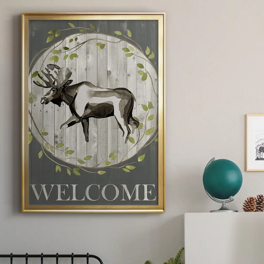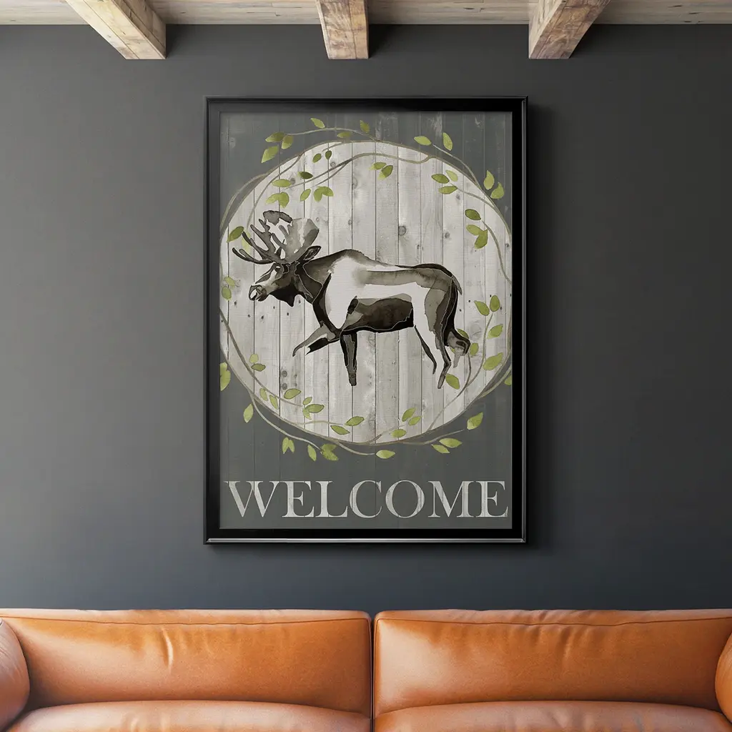 Woodland Welcome IV Premium Framed Print - Ready to Hang A Premium Framed Print created to last. Framed in distressed wood and available in an array of sizes and colors Featuring a beveled a solid wood stretcher bar, each piece comes ready to hand 4 SIZES AVAILABLE 30.5''X42.5'' - Overall Size 26.5'X36.5'' - Overall Size 22.5''x30.5'' - Overall Size 18.5''x24.5'' - Overall Size Each piece is made to order. Each piece comes with hanging hardware. Made in the USA Ready to Hang