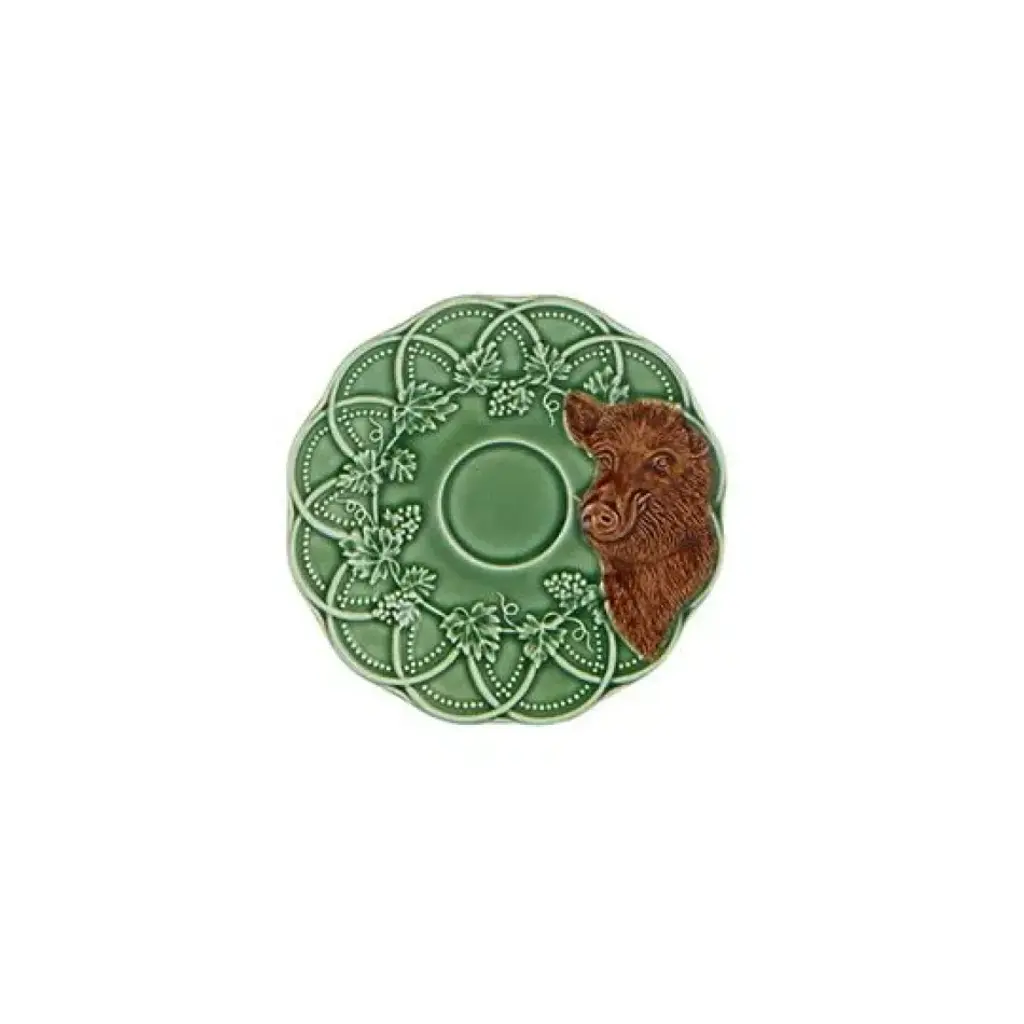 Portugal's most beloved cartoonist of the 19th century, Bordallo Pinheiro was famous for creating the character "Ze Povinho," a rustic laborer who was kind to his friends and contemptuous of those with money and power. His artistic style blends the honesty realism of late 19th-century Arts and Crafts movement with the dramatic, even grotesque, features of Goya's earlier paintings. In 1884, he and his son founded an eponymous factory in Caldas da Rainha along the Portuguese coast to create whimsical and naturalistic faience pieces based on his art. Because of the special minerals in the local soil and the skills of the craftsmen in the area, Caldas da Rainha is well-known as the capital of Portuguese pottery. Today the factory takes Pinheiro's original style into the 21st century with satirical portraits of modern day celebrities, while continuing its old fashioned, made by hand tradition of Portuguese pottery making.
