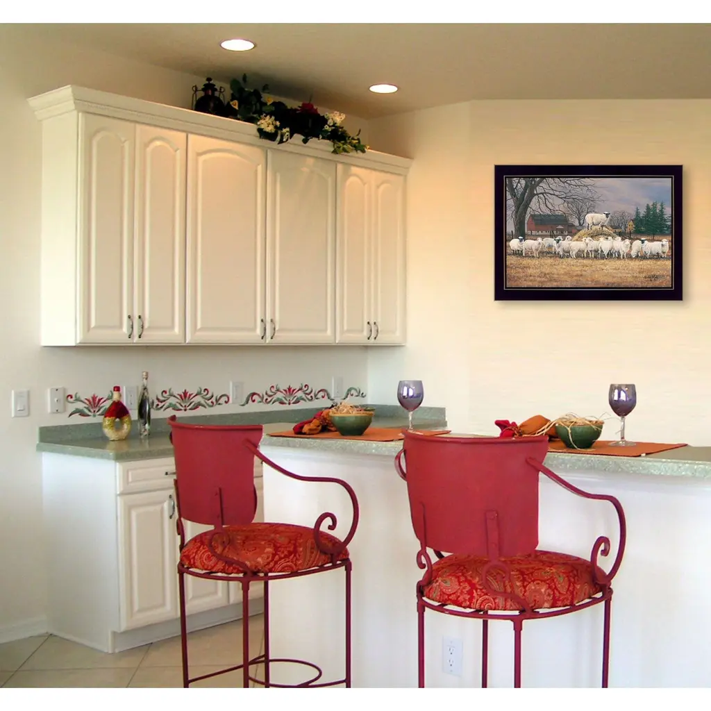 Add an air of fashion to your room and rejuvenate the space with this wool gathering 1 black framed print wall art. This print is a visual artistic expression that allows you to decorate your space in style. Reproduced for you on paper, this hanging decorative accent will be a trendy and fashionable way to dress your walls. Hang on your wall to add some up to date fashion and decoration. Instantly liven up your space with this art that brings color and dimension to your walls. 14" H x 20" W x 1" D