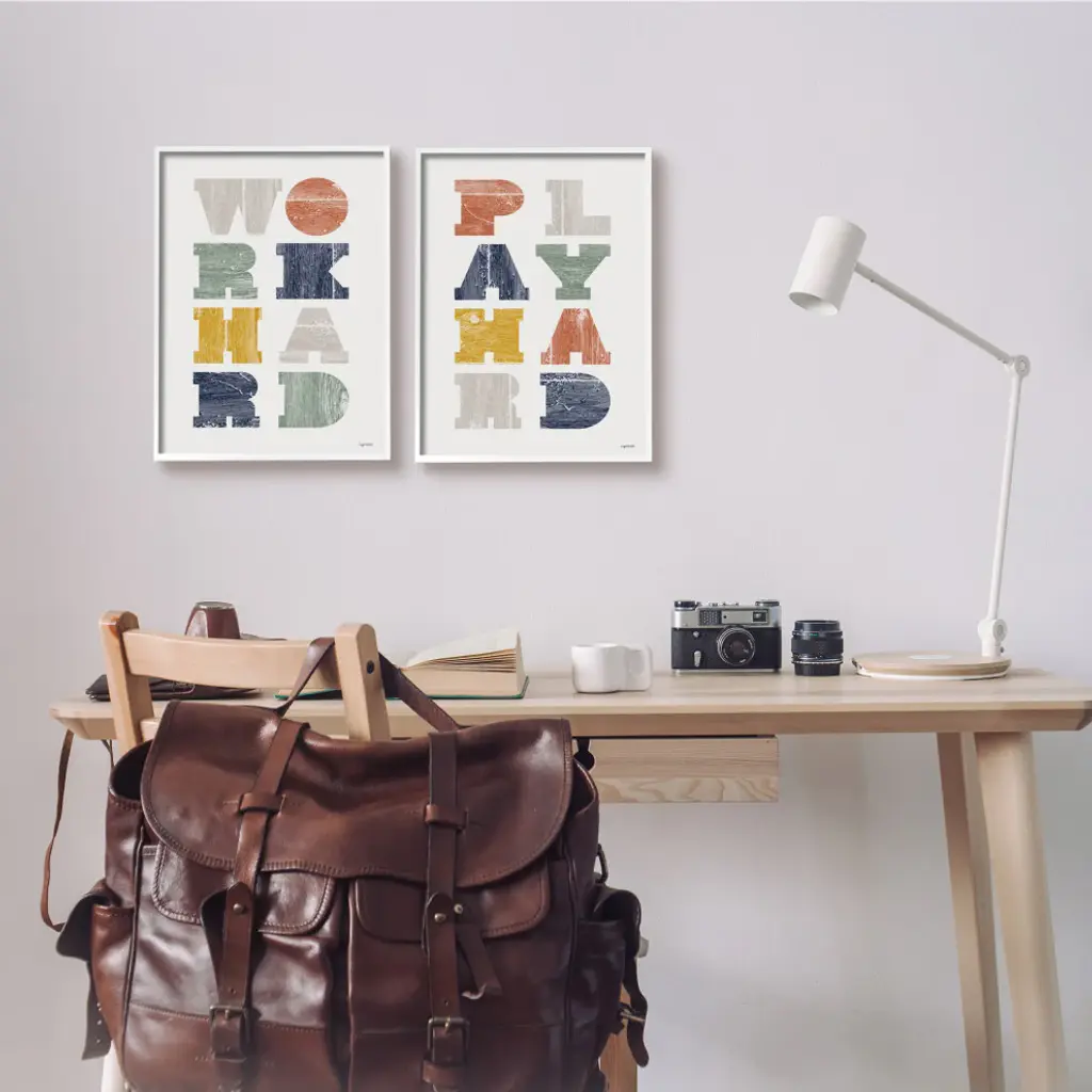 Work Hard Play Hard Phrase Children's Block Typography,2pc, Each 11 X 14