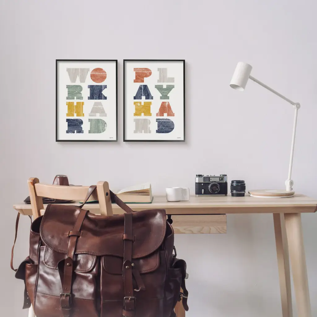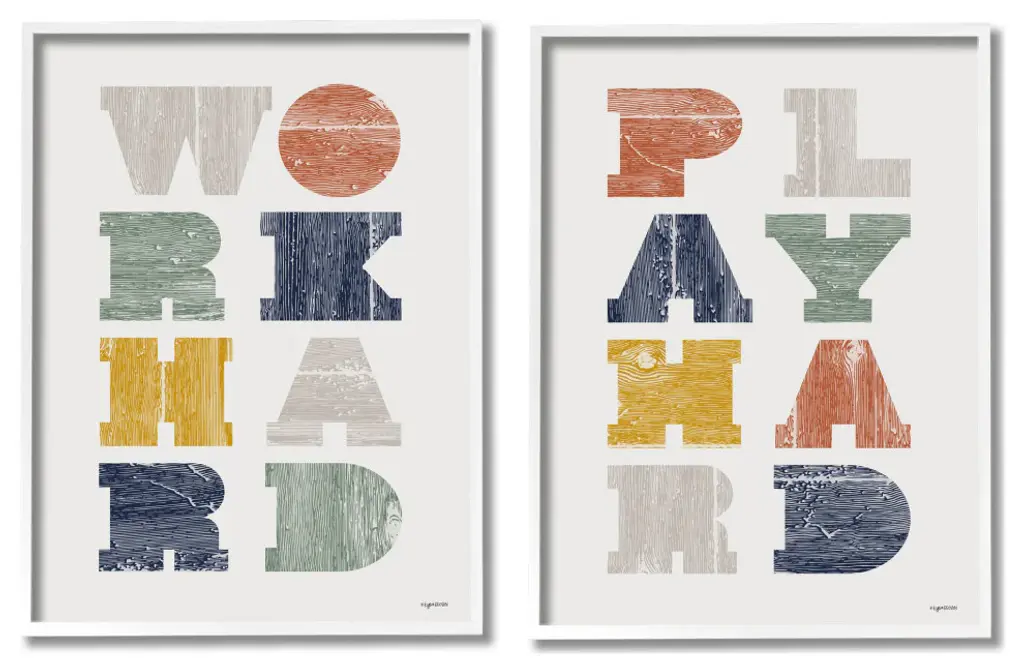 Work Hard Play Hard Phrase Children's Block Typography,2pc, Each 11 X 14