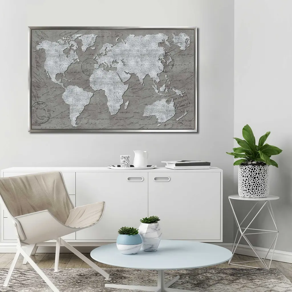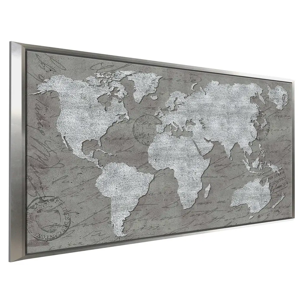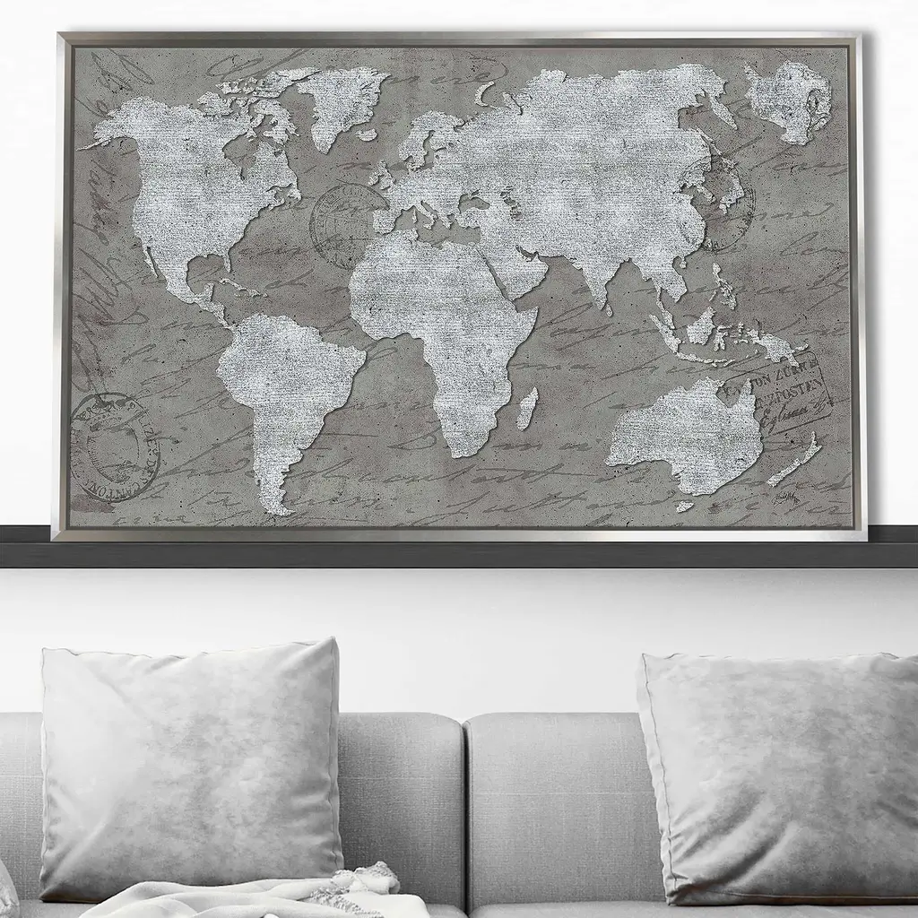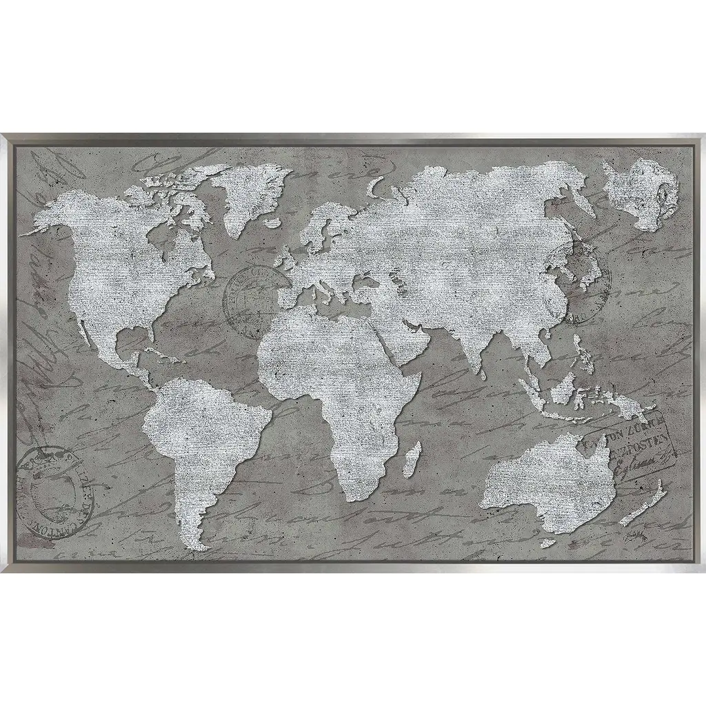 "World Map On Script" Print On Floating Canvas - 31.5 X 51.5