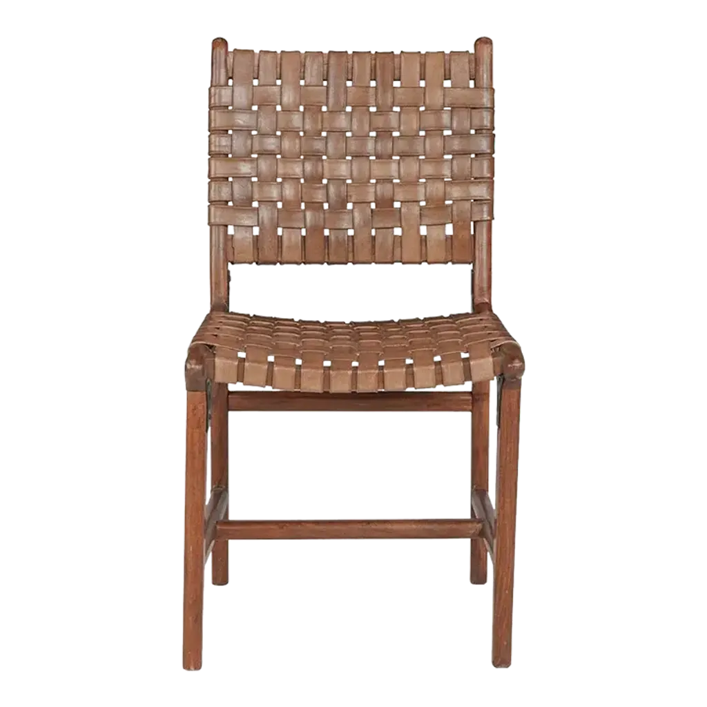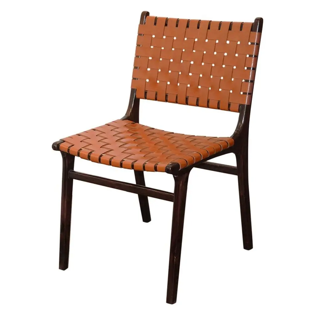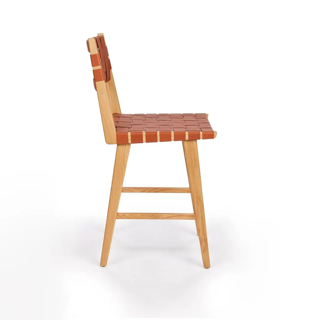 Woven Leather Backed Counter Stool In Oak And Caramel Leather By Mel Smilow