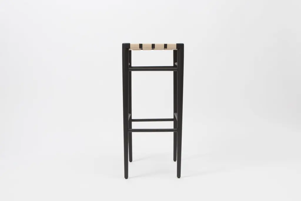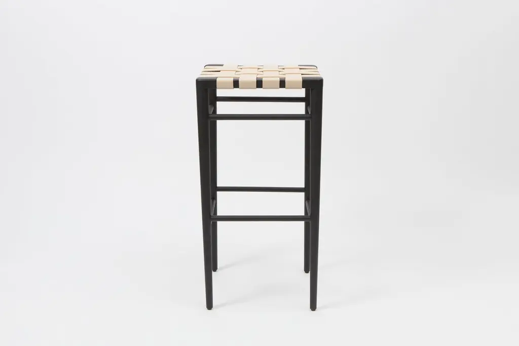 Woven Leather Bar Stool In Ebonized Ash And Cream Leather By Mel Smilow