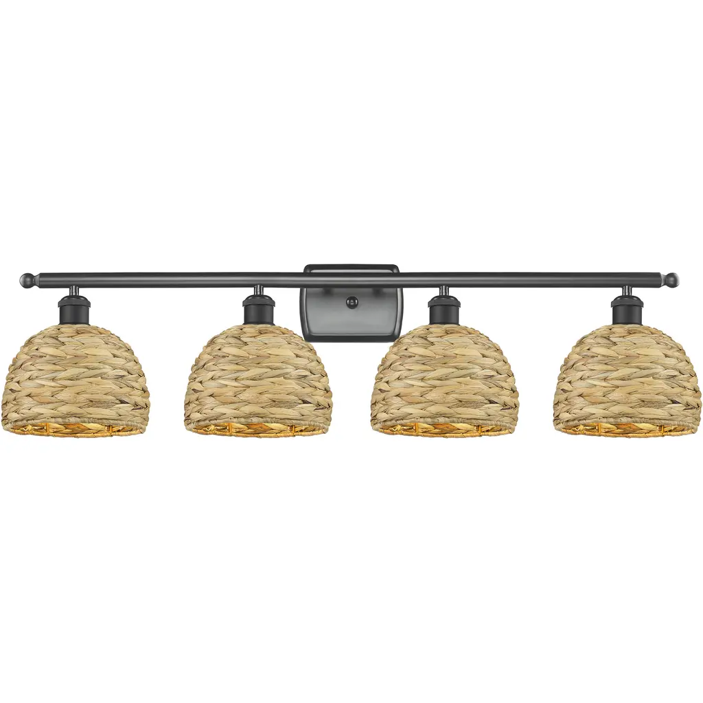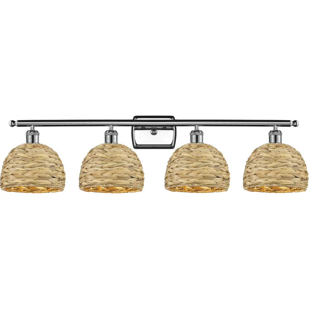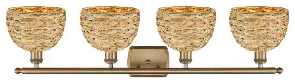 Woven Rattan 4-Light 38" Bath Vanity Light, Brushed Brass Finish, Natural Shade