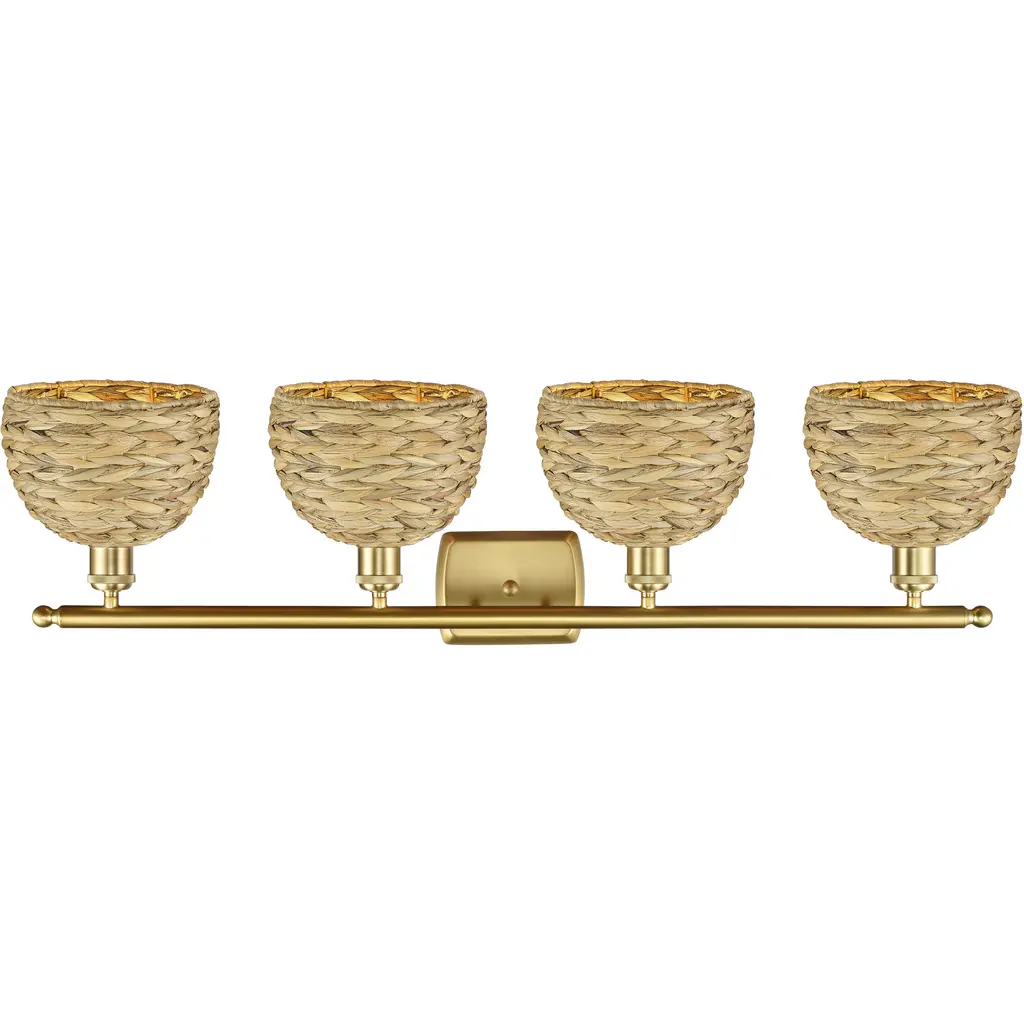 Woven Rattan 4 Light 38 Inch Satin Gold Bath Vanity Light Wall Light